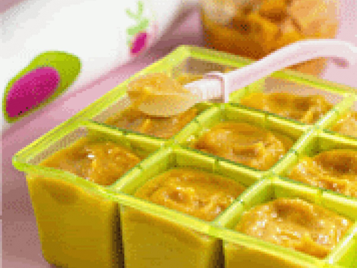 Piure de pui pentru bebelusi AperitivFoarte ușor40 min Trimite unui prieten Printează pagina Adresează o întrebare autorului Postează o poză cu rețeta gătită de tine Ingrediente 2 1 / 2 linguri ulei de masline 1 / 2 ceapa mica taiata marunt 350g morcovi feliati o frunze de dafin 1 piept de pui (125g) 1 mar mic, decojit si taiat felii