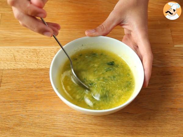 Combinati untul topit, usturoiul tocat, patrunjelul tocat si sarea.