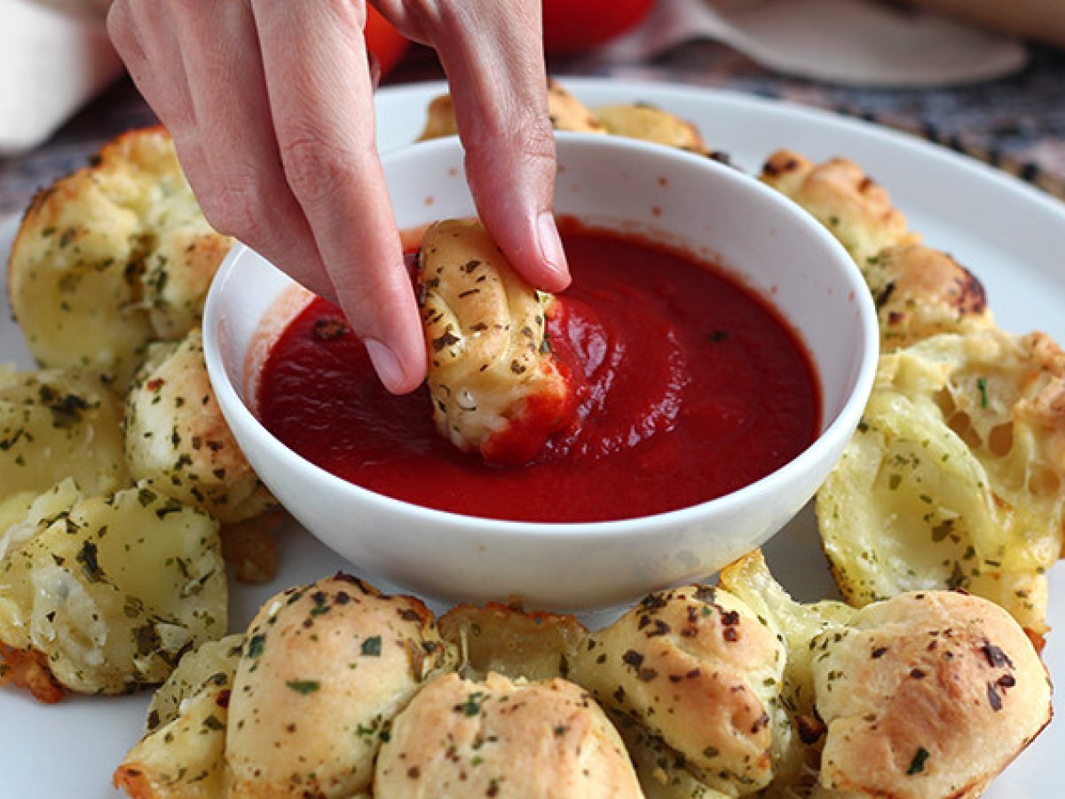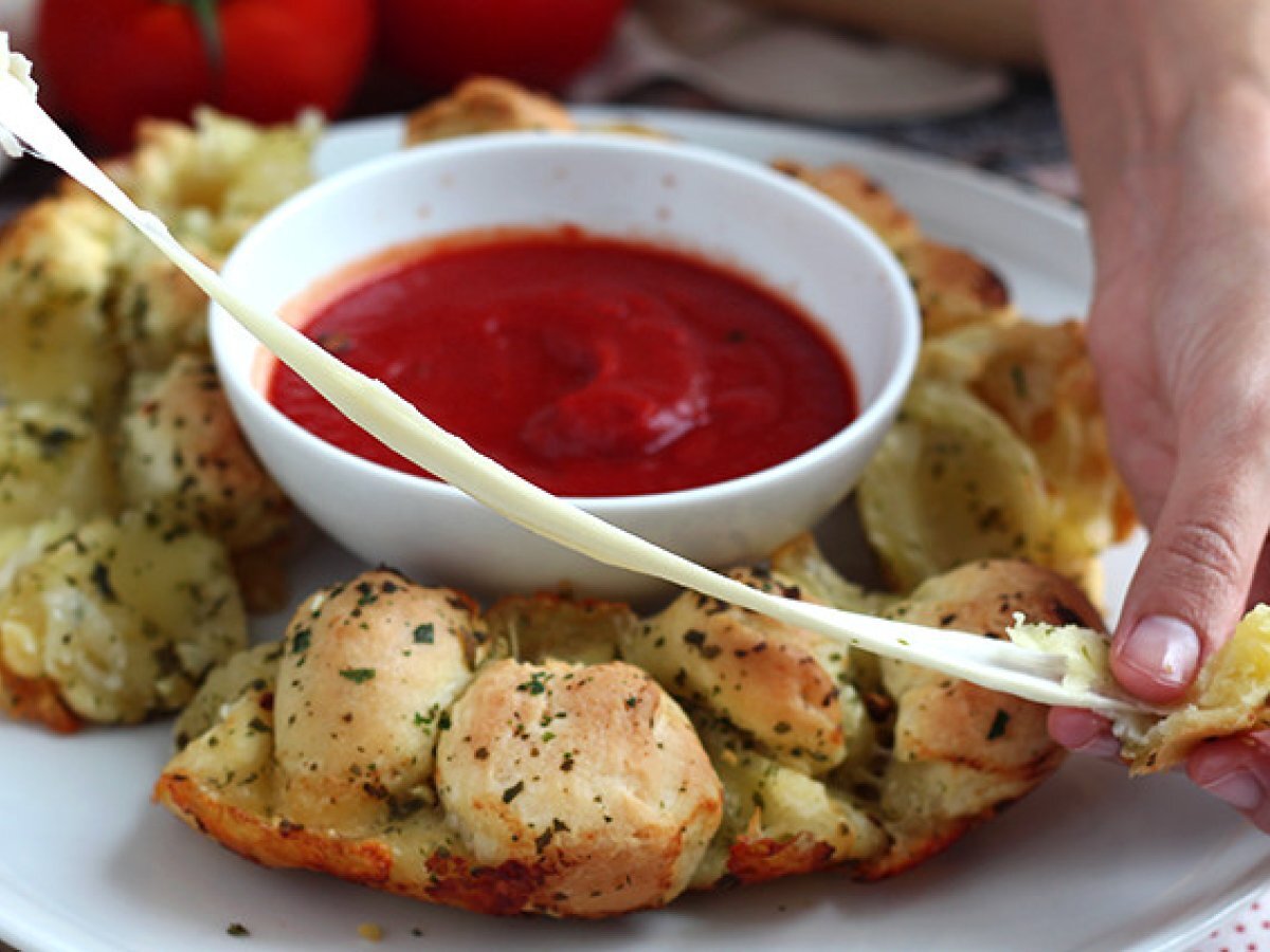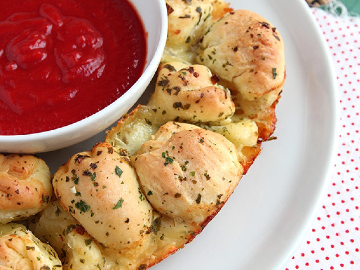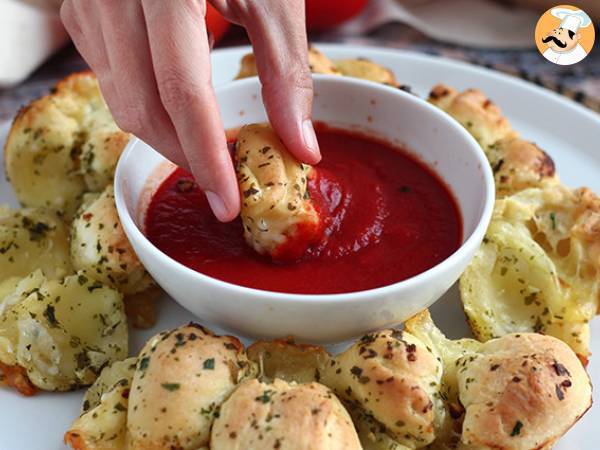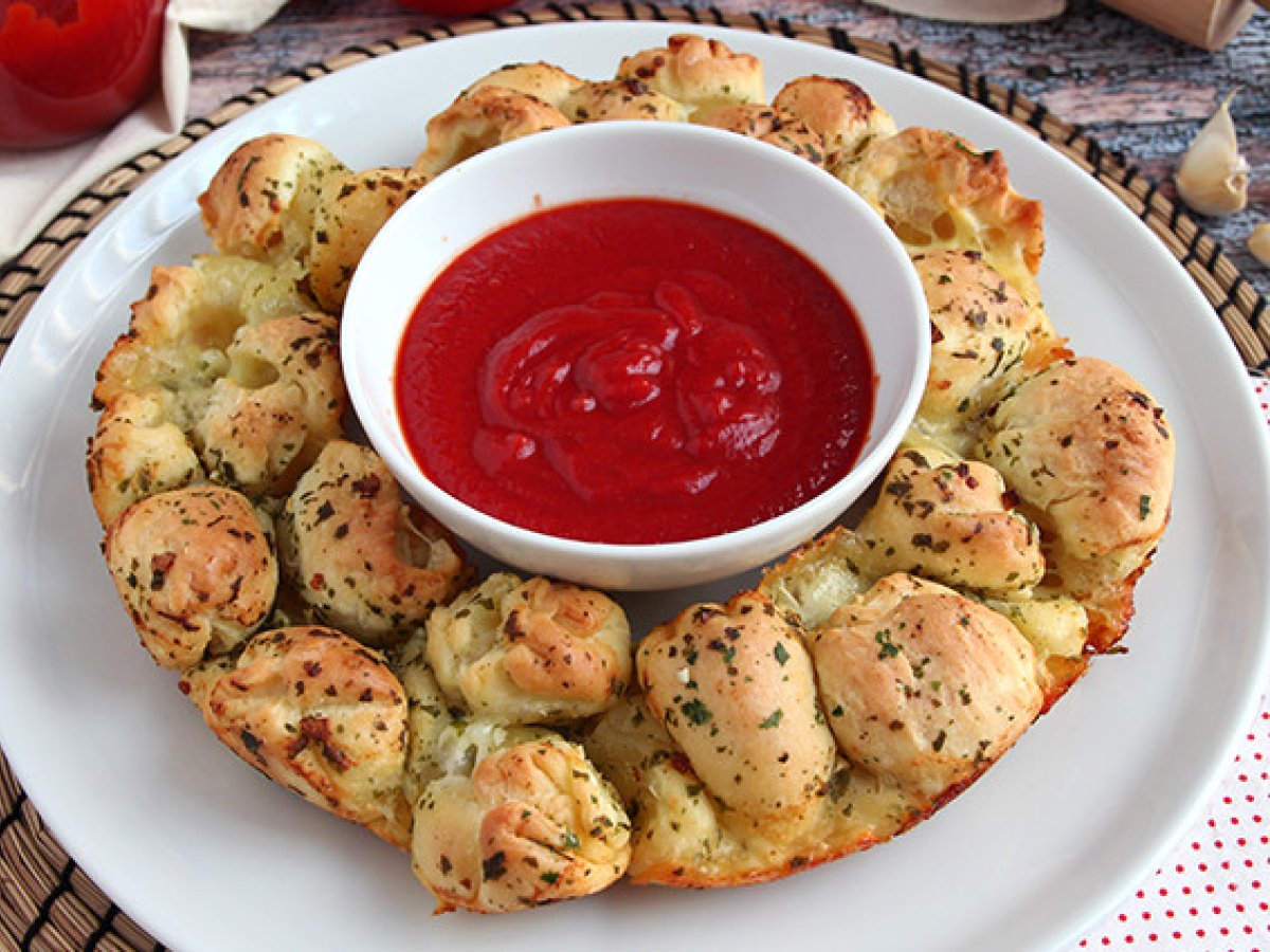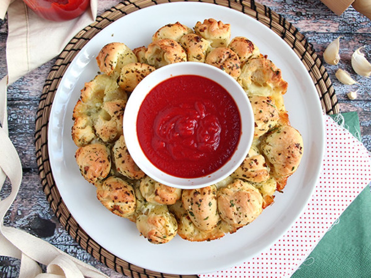 Incercati aceasta coroana cu mozzarella si patrunjel! Mingii mici, crocante la exterior si fragede la interior, pe care toata lumea le poate rontai individual sau le poate inmuia in sosul de rosii :-) Incercati reteta alaturi de explicatiile noastre de mai jos ↓ ↓