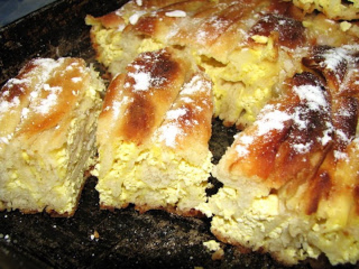 Placinta bunicii PrecedentulUrmătorul AperitivFoarte ușor1 h 50 m Trimite unui prieten Printează pagina Adresează o întrebare autorului Postează o poză cu rețeta gătită de tine Ingrediente 4 faina cat cuprinde 2 cani de apa calduta 3 linguri de untura (se poate inlocuit si cu unt) un cubulet drojdie sare 600 g branza dulce de vaca 6 oua o esenta de rom zahar pudra 10 lingurite de untura