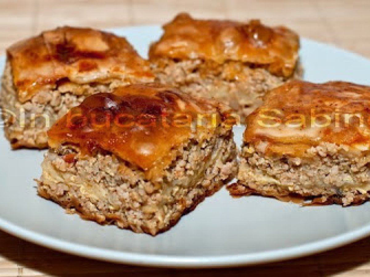 Placinta cu bere si carne PrecedentulUrmătorul AperitivFoarte ușor50 min Trimite unui prieten Printează pagina Adresează o întrebare autorului Postează o poză cu rețeta gătită de tine Ingrediente 4 1 pachet foi de placinta 6 oua 2 catei de usturoi 500 g carne tocata amestec (vita si porc) 2 cepe 500 ml bere blonda cascaval ulei pentru calit si uns foi optional: cateva ciuperci sare, piper, boia