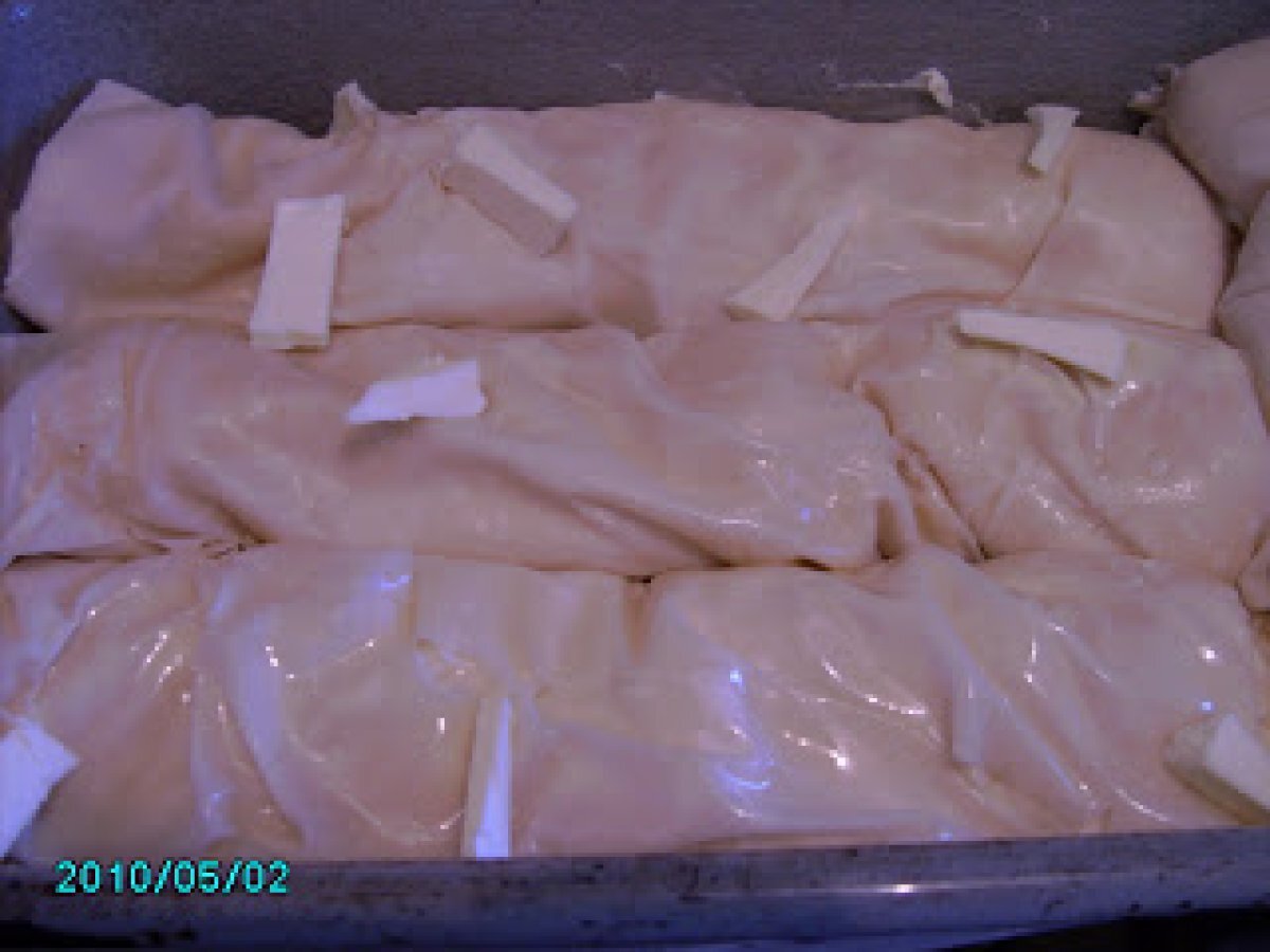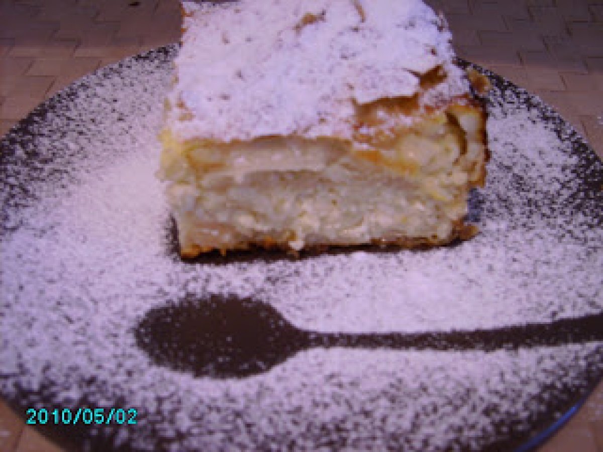 Placinta cu branza de oaie PrecedentulUrmătorul AperitivFoarte ușor1 oră Trimite unui prieten Printează pagina Adresează o întrebare autorului Postează o poză cu rețeta gătită de tine Ingrediente 4 pt umplutura: 1 kg de branza 2 oua 150 g zahar 1 iaurt mare 2 linguri de smantana punem deasupra: cuburi de unt 3 oua batute, 3-4 linguri de smantana un pachet de foi din comert