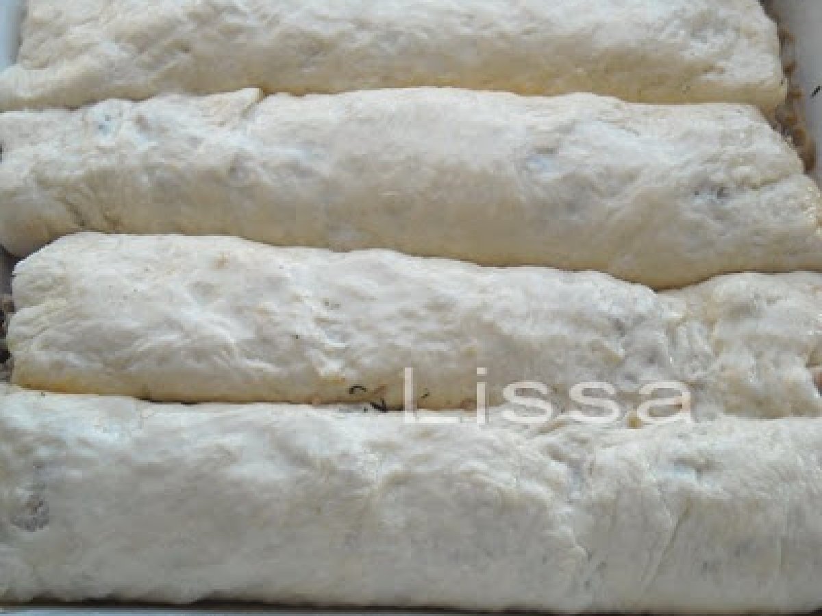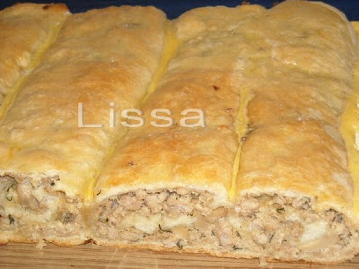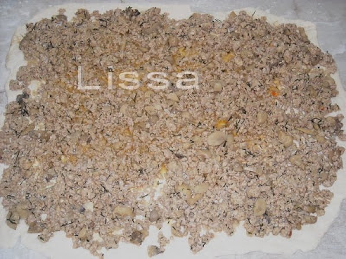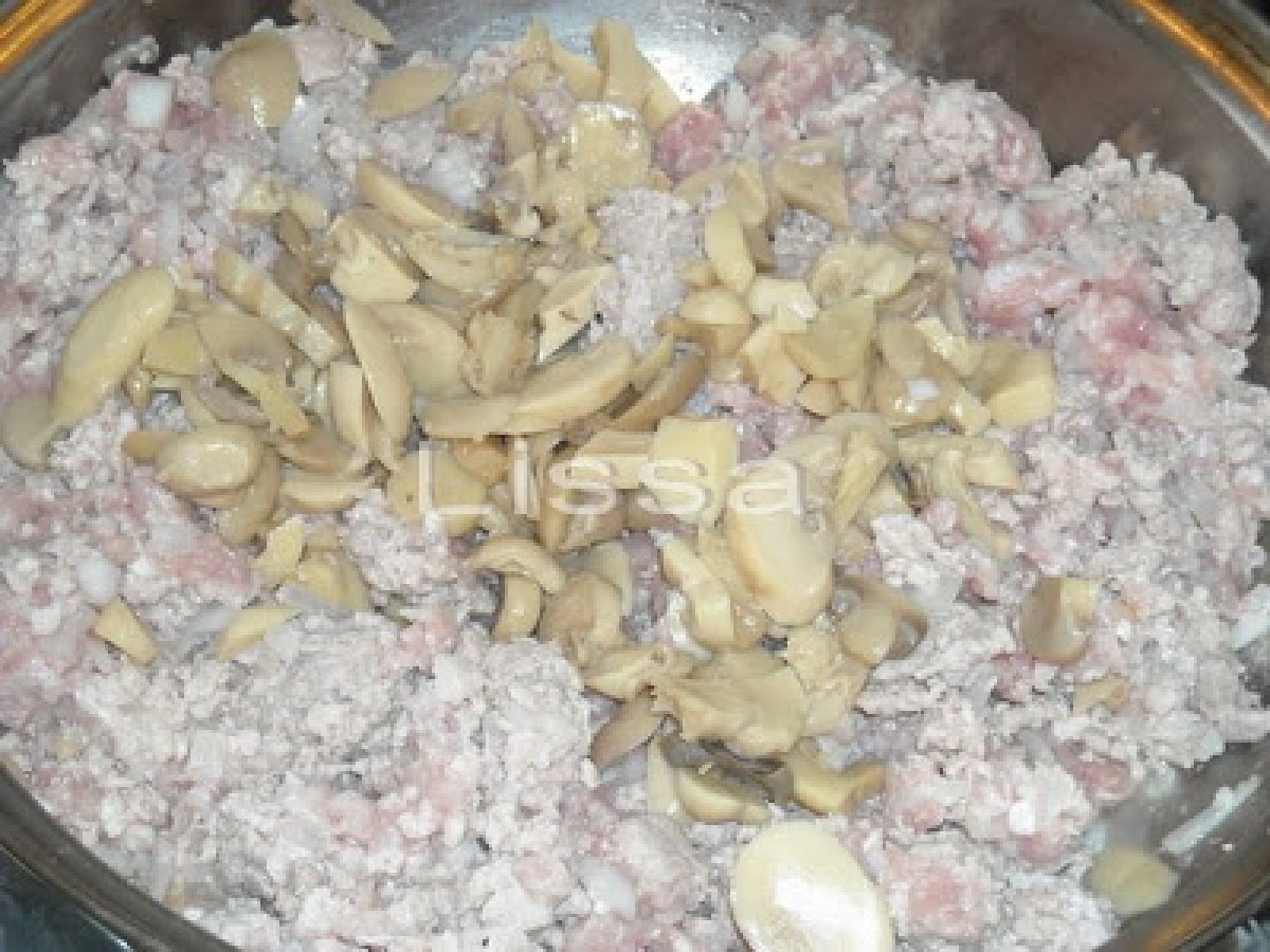 Placinta cu carne si ciuperci PrecedentulUrmătorul AperitivFoarte ușor40 min Trimite unui prieten Printează pagina Adresează o întrebare autorului Postează o poză cu rețeta gătită de tine Ingrediente 4 Pentru aluat: 500 g faina o cana apa calda(250g) 25 g drojdie 1 lingurita sare 700 g carne tocata un borcanel de ciuperci champignon taiate(150g) 3 oua 1 ceapa 2 l ulei 1 g faina condimente.