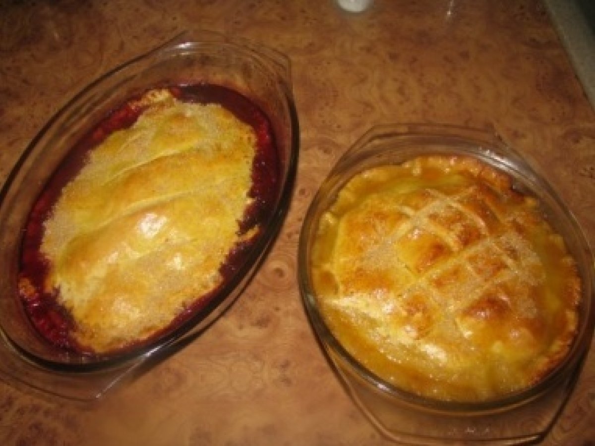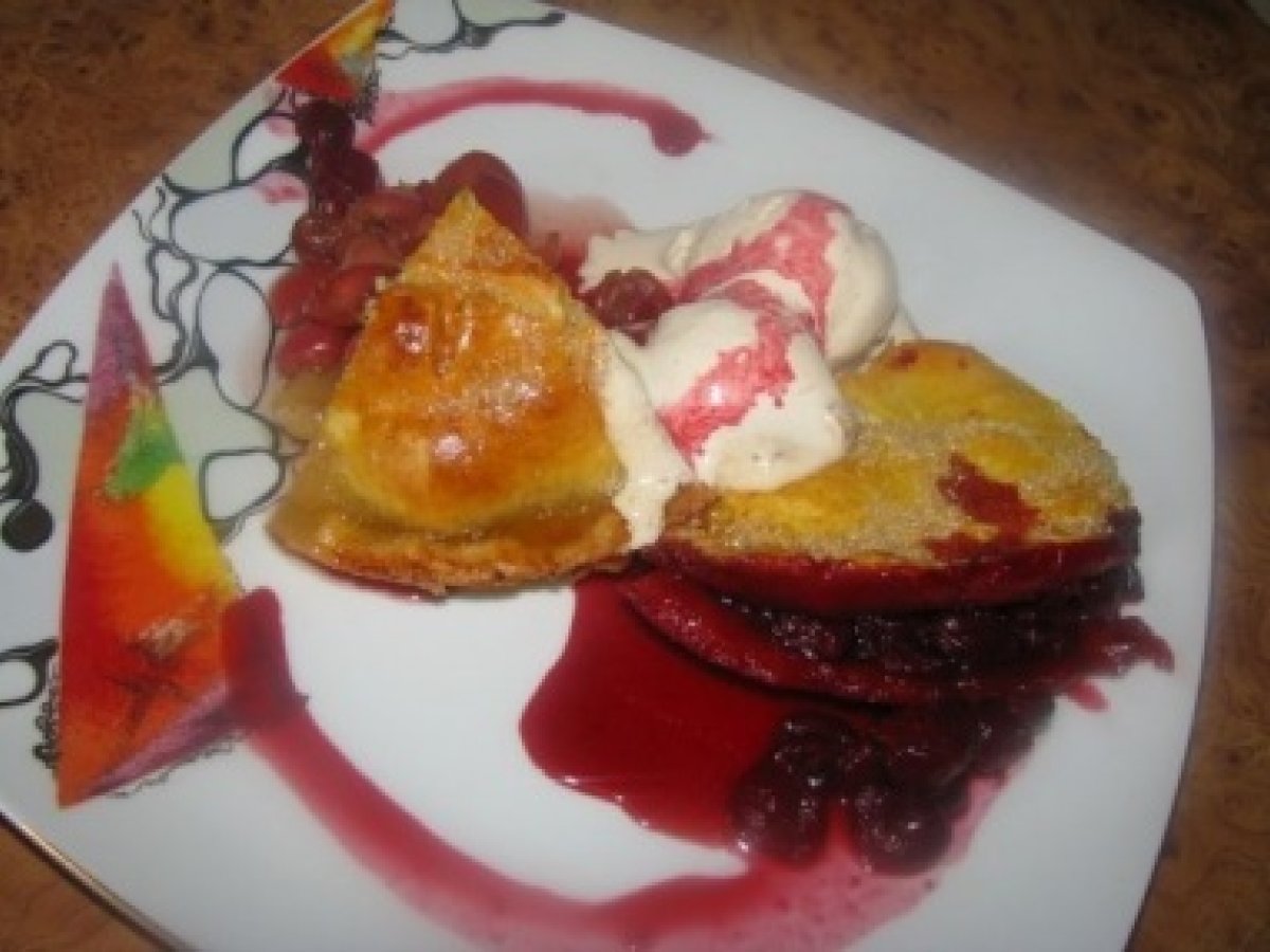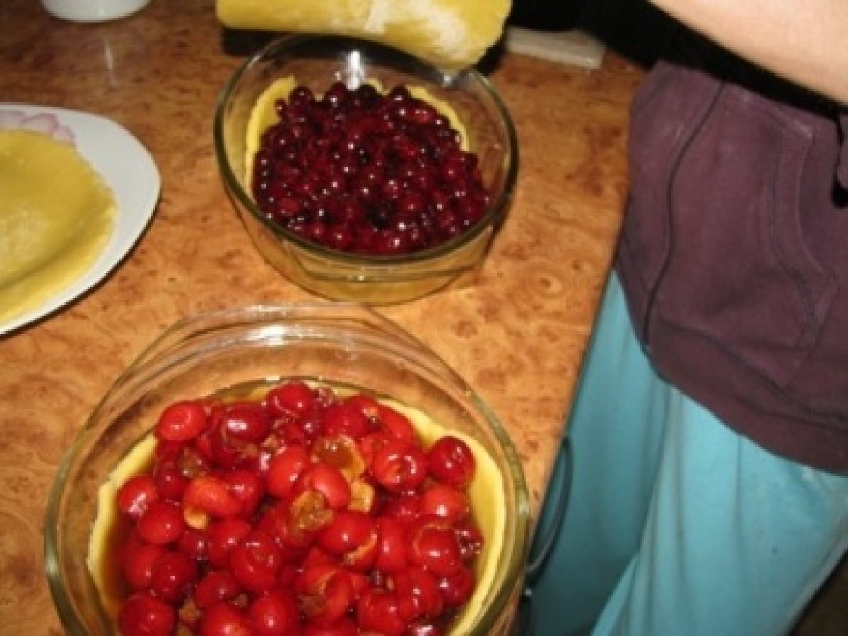 Placinte crocante cu cirese si visine votează acum PrecedentulUrmătorul AperitivFoarte ușor2 h 25 m Trimite unui prieten Printează pagina Adresează o întrebare autorului Postează o poză cu rețeta gătită de tine Ingrediente 6 2 placinte medii Pentru placinta cu cirese 500 g cirese proaspete, curatate de samburi 2-3 linguri zahar 1 lingura visinata Pentru placinta cu visine 500 g visine proaspete, curatate de samburi 2-3 linguri zahar 1 lingura visinata Pentru aluat 400 g faina 200 gr unt sau margarina Rama rece, taiat(a) cubulete 50 g zahar pudra 2 galbenusuri + 1 galbenus pentru uns 2-3 linguri zahar cu granule mari