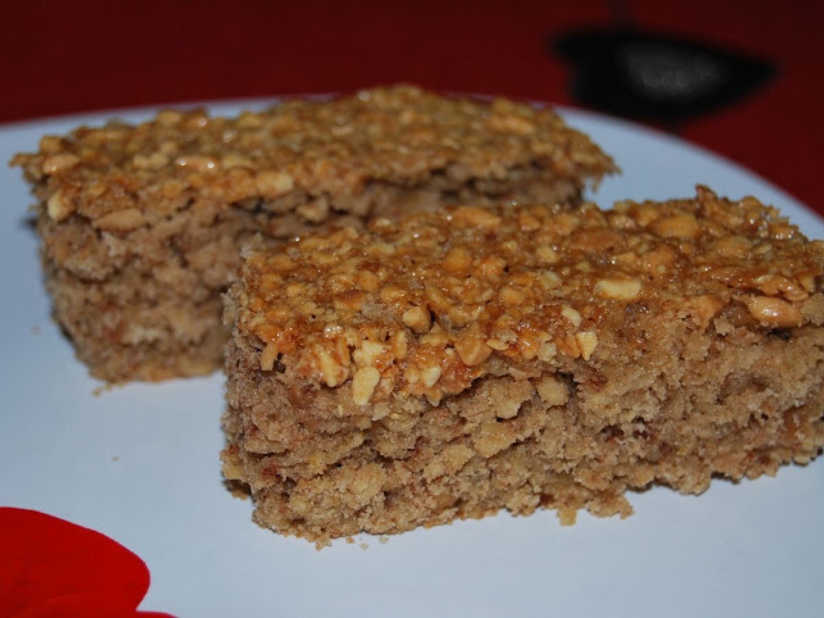 Prajitura cu fulgi de ovaz PrecedentulUrmătorul AperitivFoarte ușor55 min Trimite unui prieten Printează pagina Adresează o întrebare autorului Postează o poză cu rețeta gătită de tine Ingrediente 4 200 g de fulgi de ovaz 100 g de alune pisate 1 praf de copt sare 200 g de unt 8 linguri de zahar 2 oua 1 plic ness 1 lingurita de pudra de scortisoara. Caramel: 4 linguri de zahar o bucatica de unt 3-4 linguri de lapte.