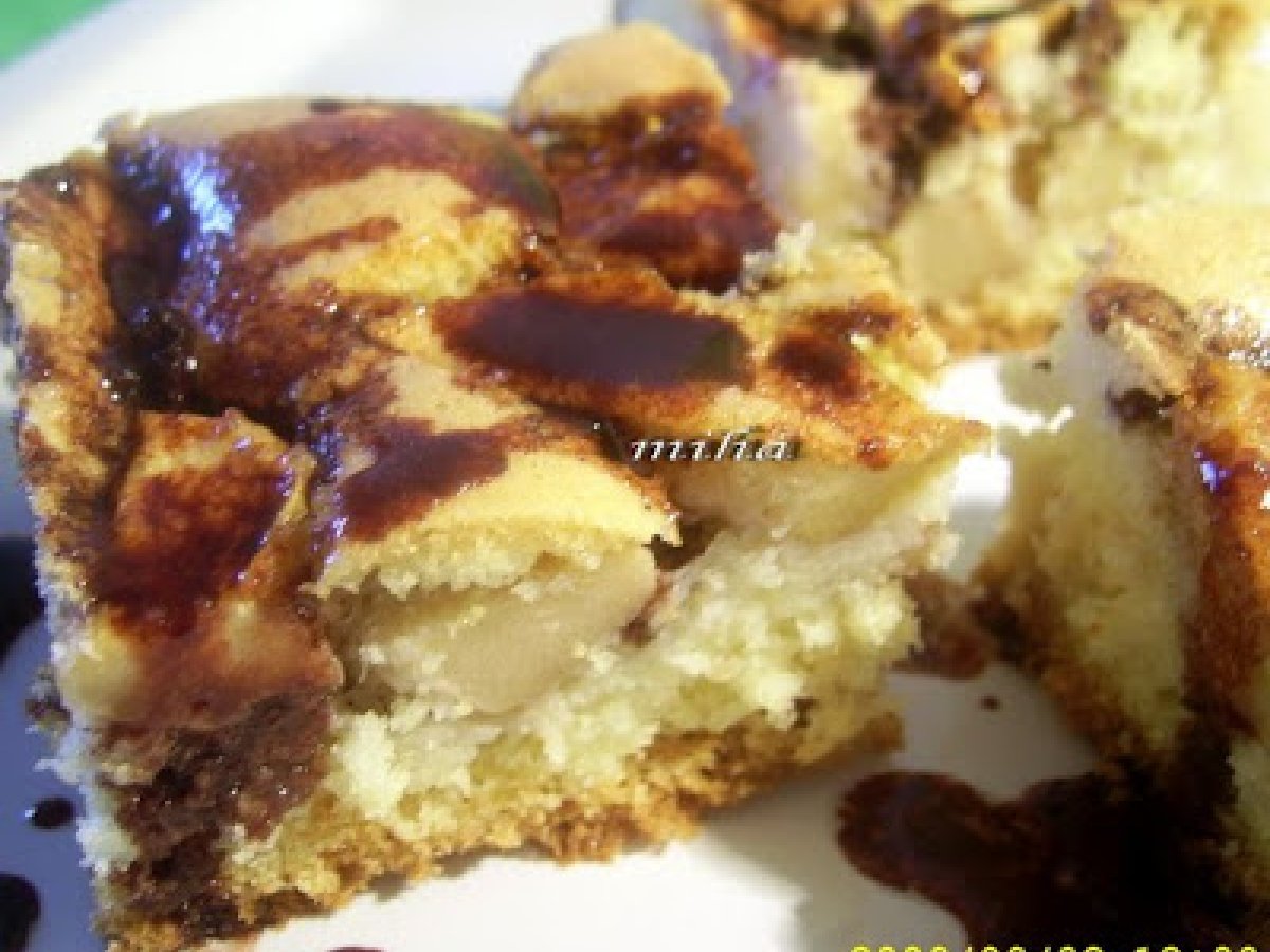 Prajitura cu mere si sos de ciocolata PrecedentulUrmătorul AperitivFoarte ușor1 oră594 Kcal Trimite unui prieten Printează pagina Adresează o întrebare autorului Postează o poză cu rețeta gătită de tine Ingrediente 4 5 oua 100 g zahar 5 linguri apa minerala 5 linguri ulei 100 g faina 1 praf de copt esenta de vanilie 4-5 mere 4 linguri zahar 2 lingurite scortisoara Cost estimat: 3.49Euros€ (0.87€/porție)