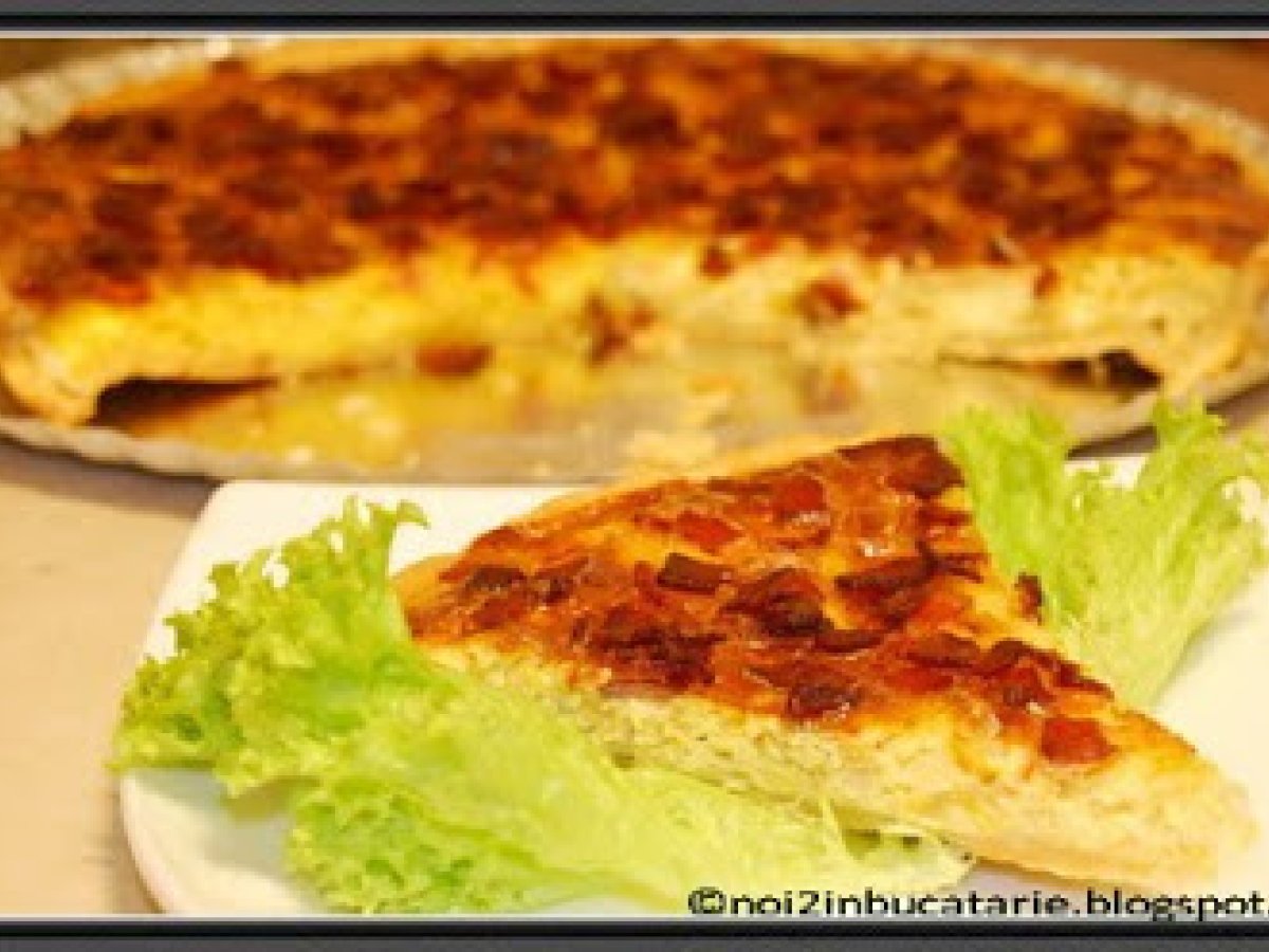 Quiche lorraine cu praz PrecedentulUrmătorul AperitivFoarte ușor1 oră Trimite unui prieten Printează pagina Adresează o întrebare autorului Postează o poză cu rețeta gătită de tine Ingrediente 6 Aluat: 150 g unt, 80 % grasime 300 g faina alba apa sare Umplutura: 4 oua 150 g smantana grasa 2-3 linguri de lapte 150 g bcon afumat 2 fire de praz