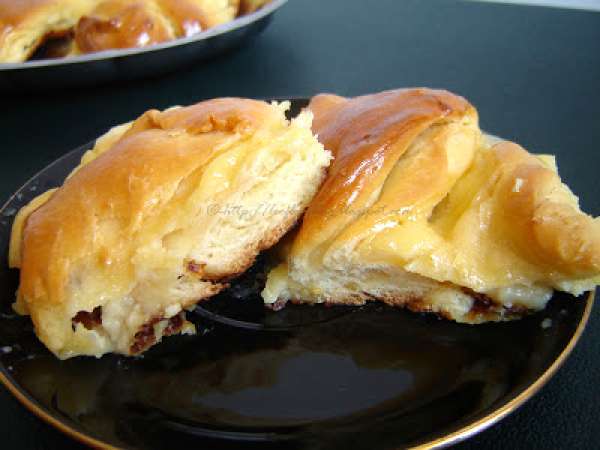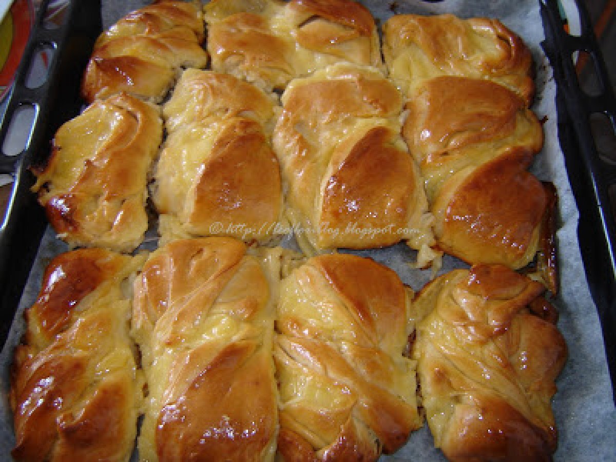 Rasucite cu budinca de vanilie PrecedentulUrmătorul AperitivFoarte ușor1 h 5 m381 Kcal Trimite unui prieten Printează pagina Adresează o întrebare autorului Postează o poză cu rețeta gătită de tine Ingrediente 4 300 g faina 10 g drojdie proaspata 2 linguri zahar 1 varf sare 160 ml. lapte caldut 25 g unt topit 1 plic praf budinca vanilie (Dr.Oetker) 1 ou 1 plic budinca vanilie Cost estimat: 1.13Euros€ (0.28€/porție)