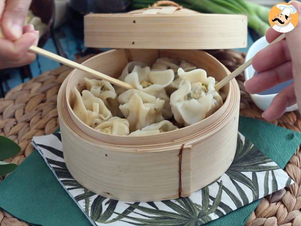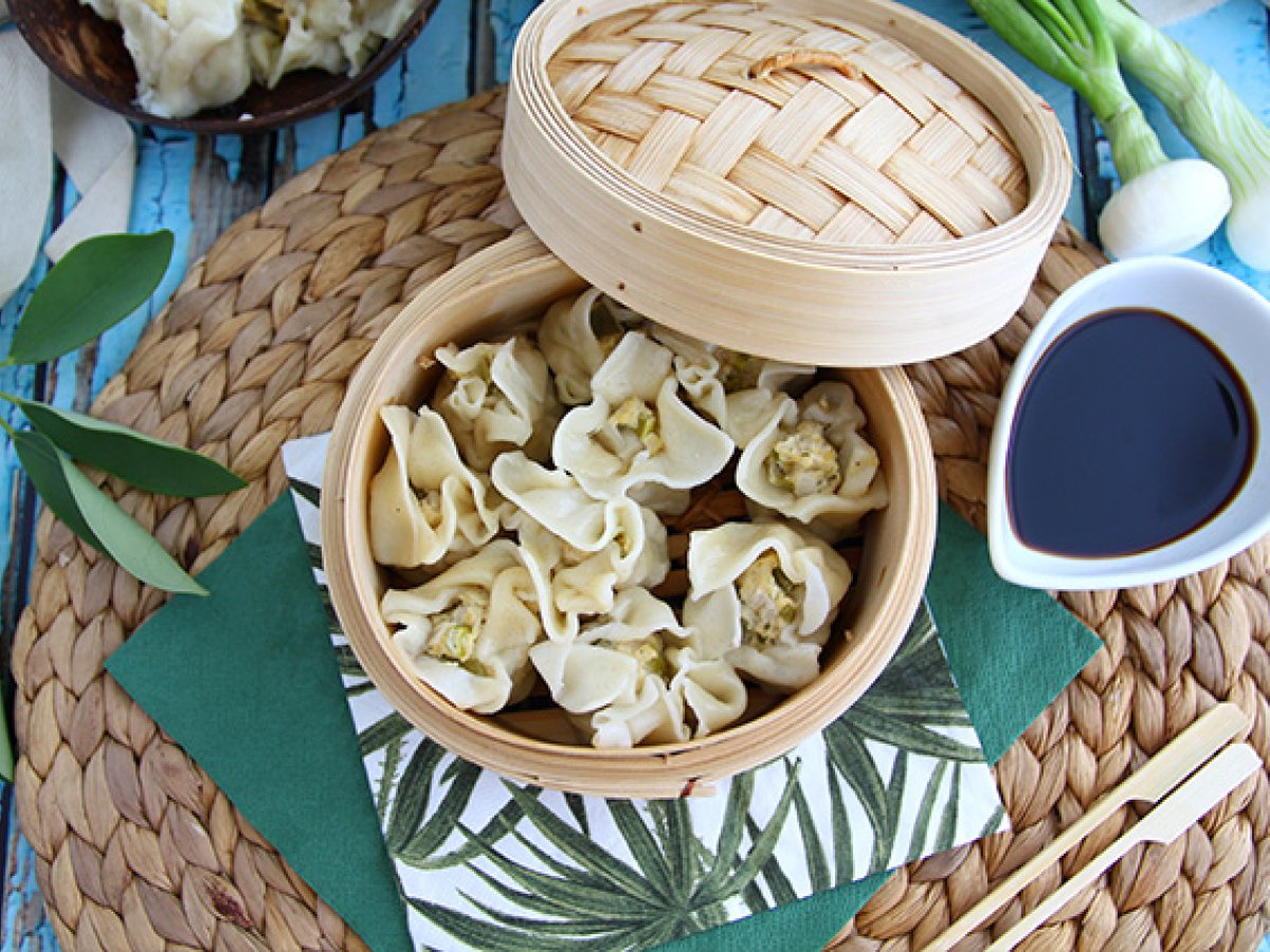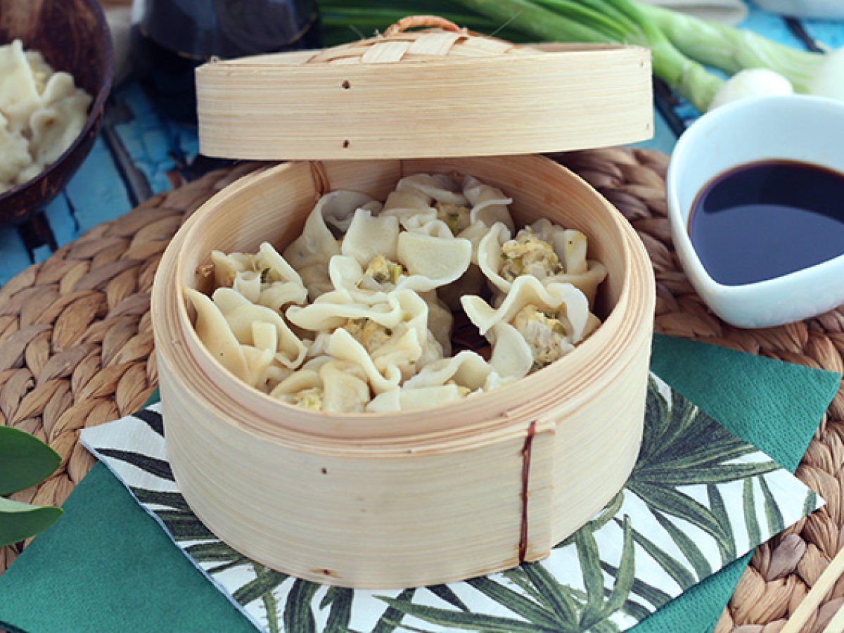 Puneti ravioli intr-un cos de bambus pentru abur si gatiti timp de 45 de minute.