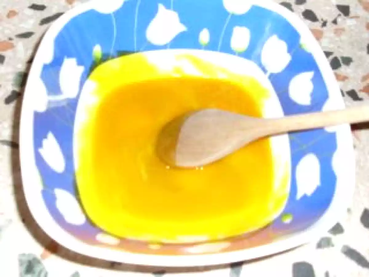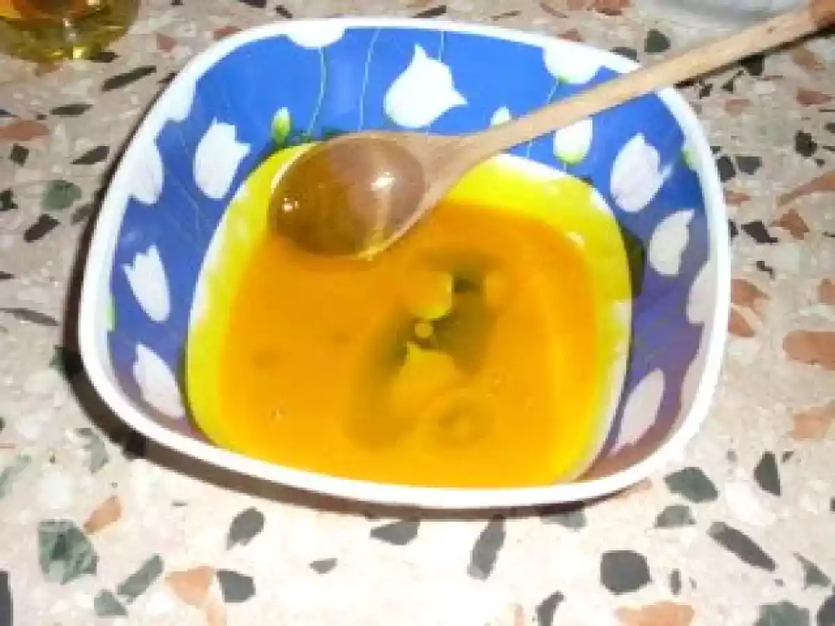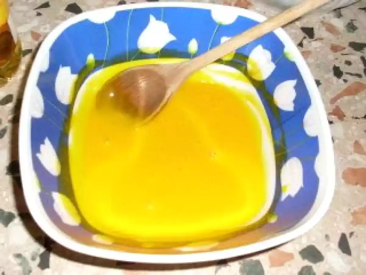 - Separat cele 4 oua amestecat galbesnusele pana ce au devenit astfel : adaugat cate o lg de ulei dupa care amestecat bine dupa fiecare astfel: