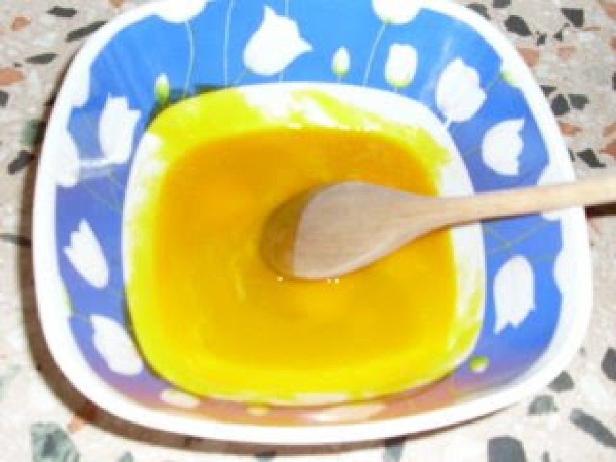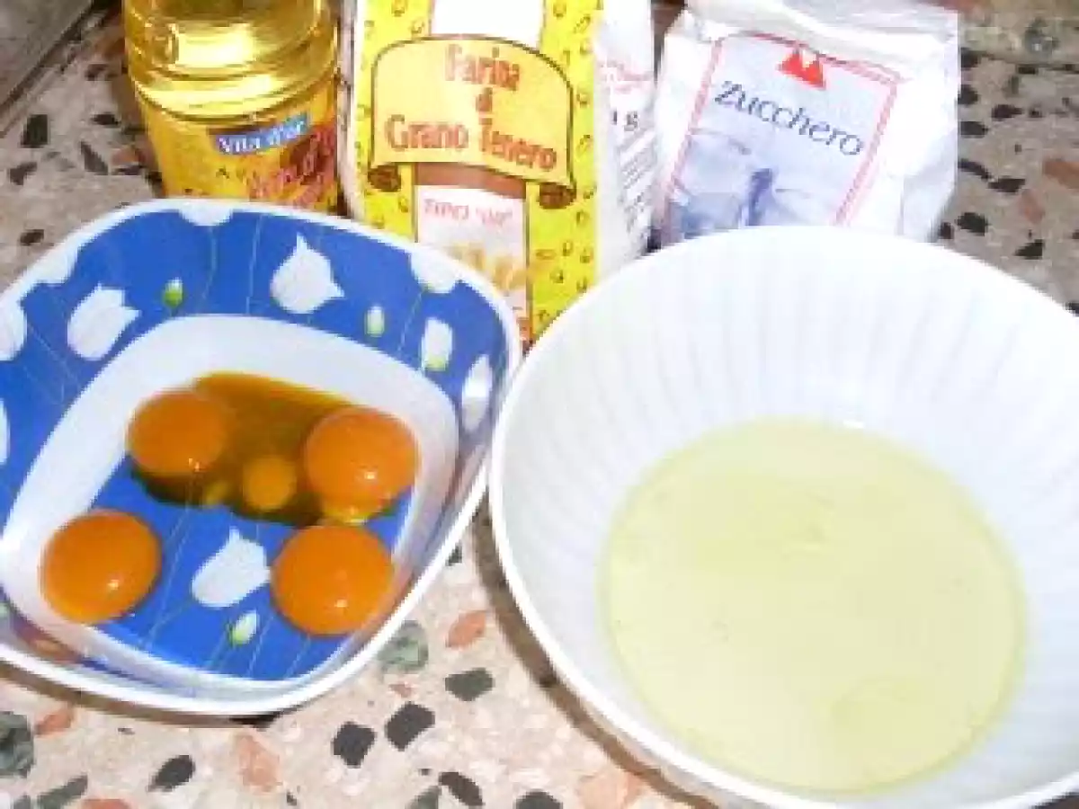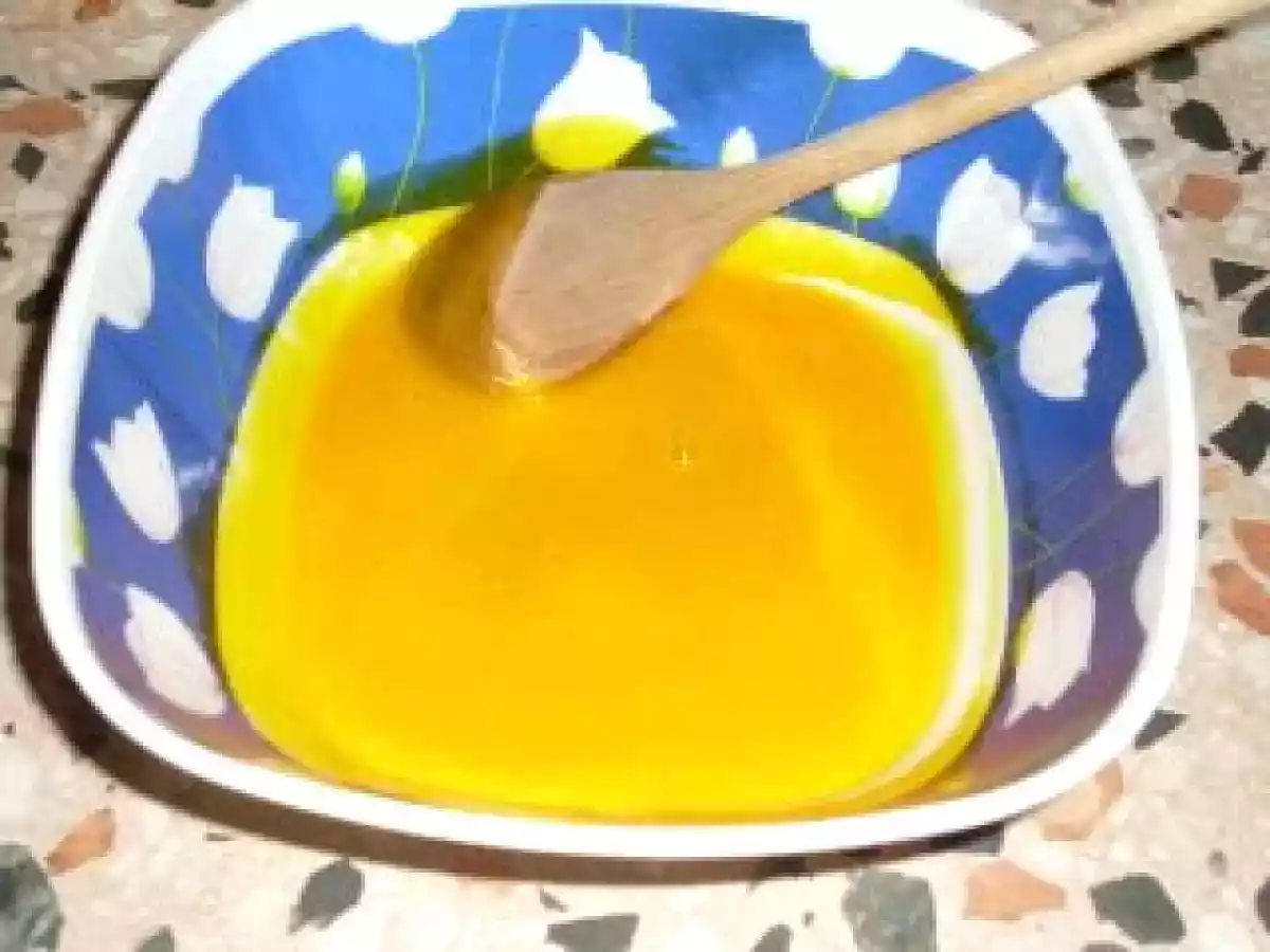 - Separat cele 4 oua amestecat galbesnusele pana ce au devenit astfel : adaugat cate o lg de ulei dupa care amestecat bine dupa fiecare astfel: