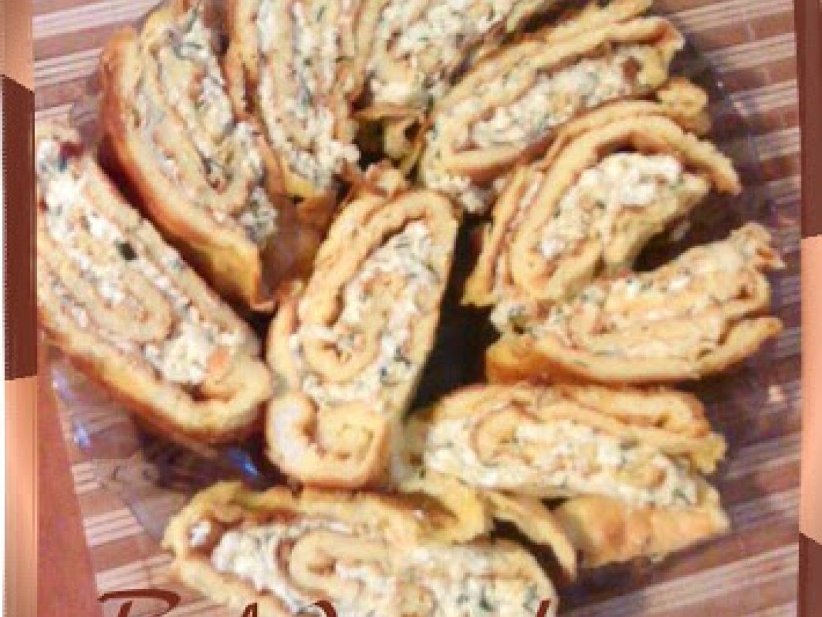 Rulada cu branza PrecedentulUrmătorul AperitivFoarte ușor40 min Trimite unui prieten Printează pagina Adresează o întrebare autorului Postează o poză cu rețeta gătită de tine Ingrediente 4 100 ml ulei 500 ml lapte 5 oua 1 lingurita rasa sare. Pentru umplutura de branza: 300 g branza proaspata de vaci 200 g telemea 1 legatura marar