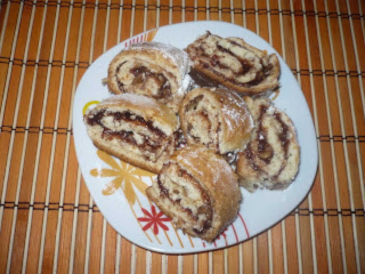 Rulada cu miere PrecedentulUrmătorul AperitivFoarte ușor1 oră Trimite unui prieten Printează pagina Adresează o întrebare autorului Postează o poză cu rețeta gătită de tine Ingrediente 4 3 lingurite cu miere 4 linguri ulei un varf de cutit de bicarbonat 1 pahar mare de sifon 400 g faina sare gem 2 pliculete zahar vanilat 200 g nuci pisate esenta de rom 150 g zahar pudra