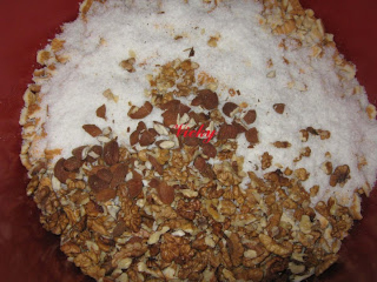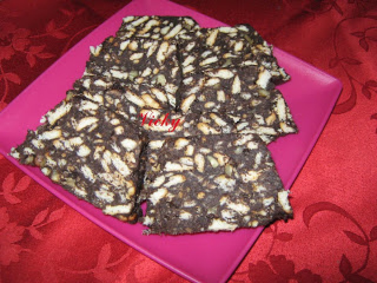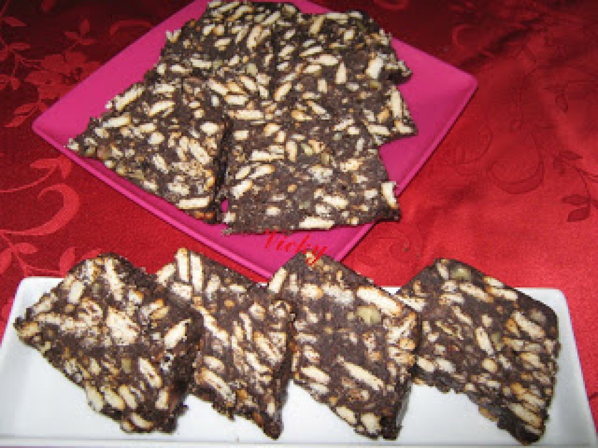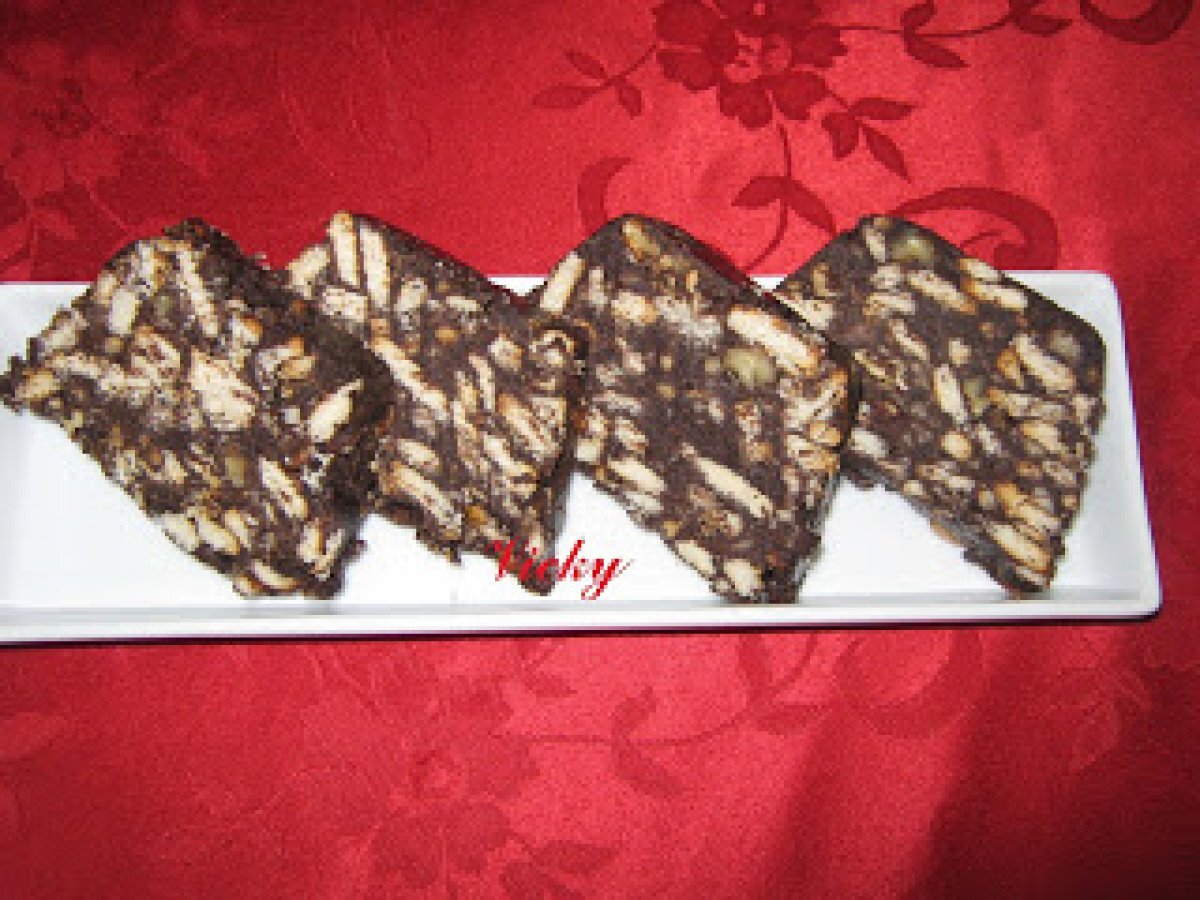 Rulada de biscuiti PrecedentulUrmătorul AperitivFoarte ușor1 oră Trimite unui prieten Printează pagina Adresează o întrebare autorului Postează o poză cu rețeta gătită de tine Ingrediente 6 1 kg biscuiti tari esenta de vanilie 200 g margarina 100 g nuca de cocos 2-3 lingurite de rom 3-4 linguri cacao 100 g migdale 200 g nuci 1 praf de sare 200 g zahar 1 ou