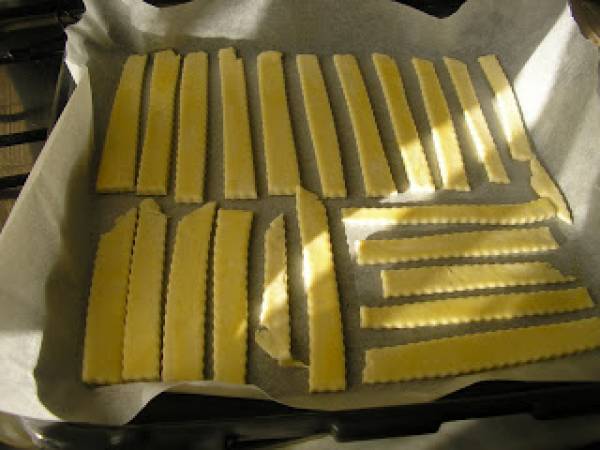A doua zi intindem aluatul cu facaletul si taiem saleurile in forma dorita, le ungem cu galbenusul batut si le punem intr-o tava pe care pune hartie de copt.