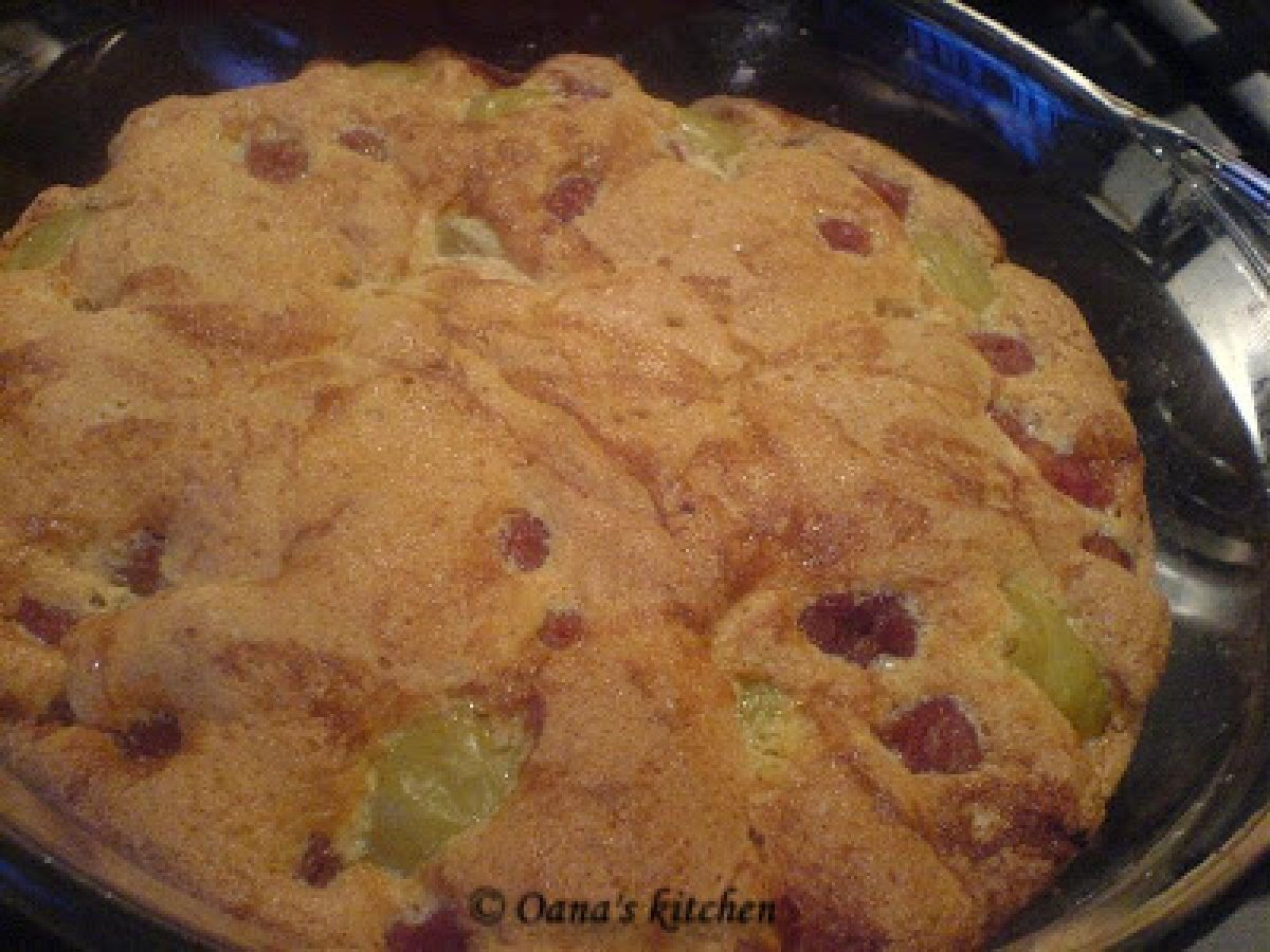 Tarta cu visine si struguri! PrecedentulUrmătorul AperitivFoarte ușor43 min Trimite unui prieten Printează pagina Adresează o întrebare autorului Postează o poză cu rețeta gătită de tine Ingrediente 4 6 oua 1 cana zahar 1 cana faina esenta vanilie 1 cana visine din compot struguri 5 linguri apa