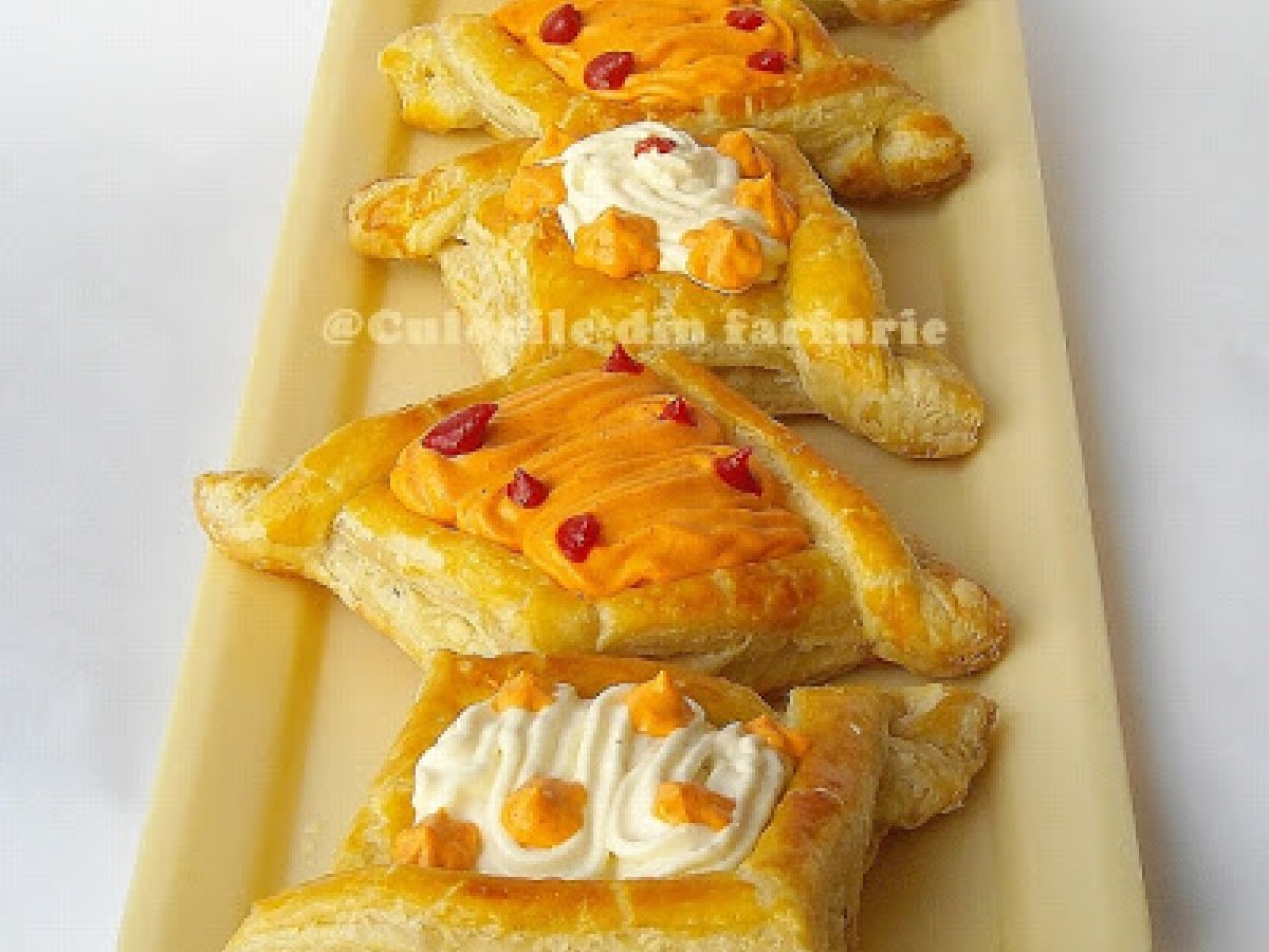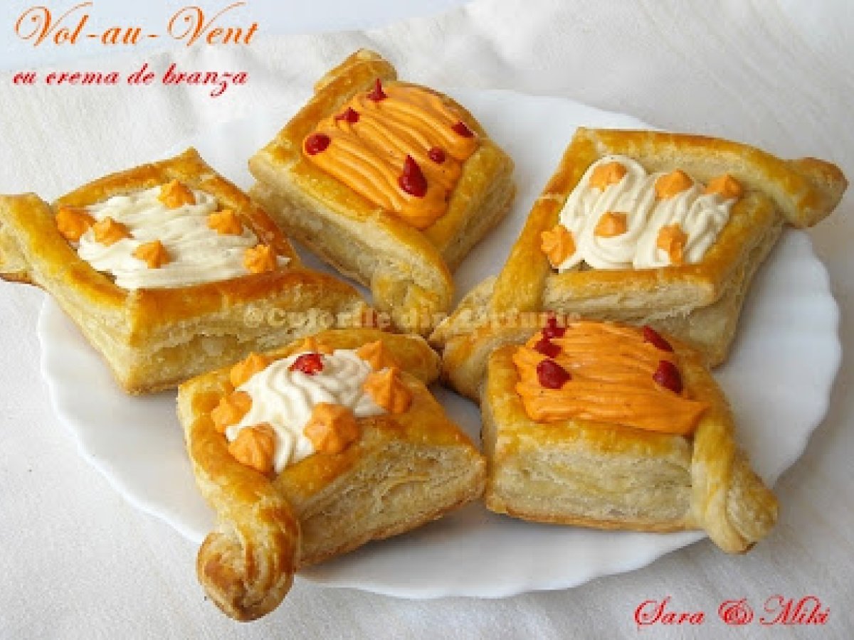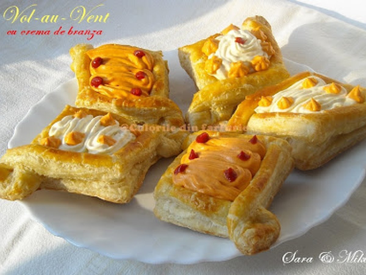 Vol-au-vent cu crema de branza PrecedentulUrmătorul AperitivFoarte ușor45 min Trimite unui prieten Printează pagina Adresează o întrebare autorului Postează o poză cu rețeta gătită de tine Ingrediente 6 400 g aluat fraged 200 g crema de branza 3-4 linguri de smantana pasta de boia dulce sare piper