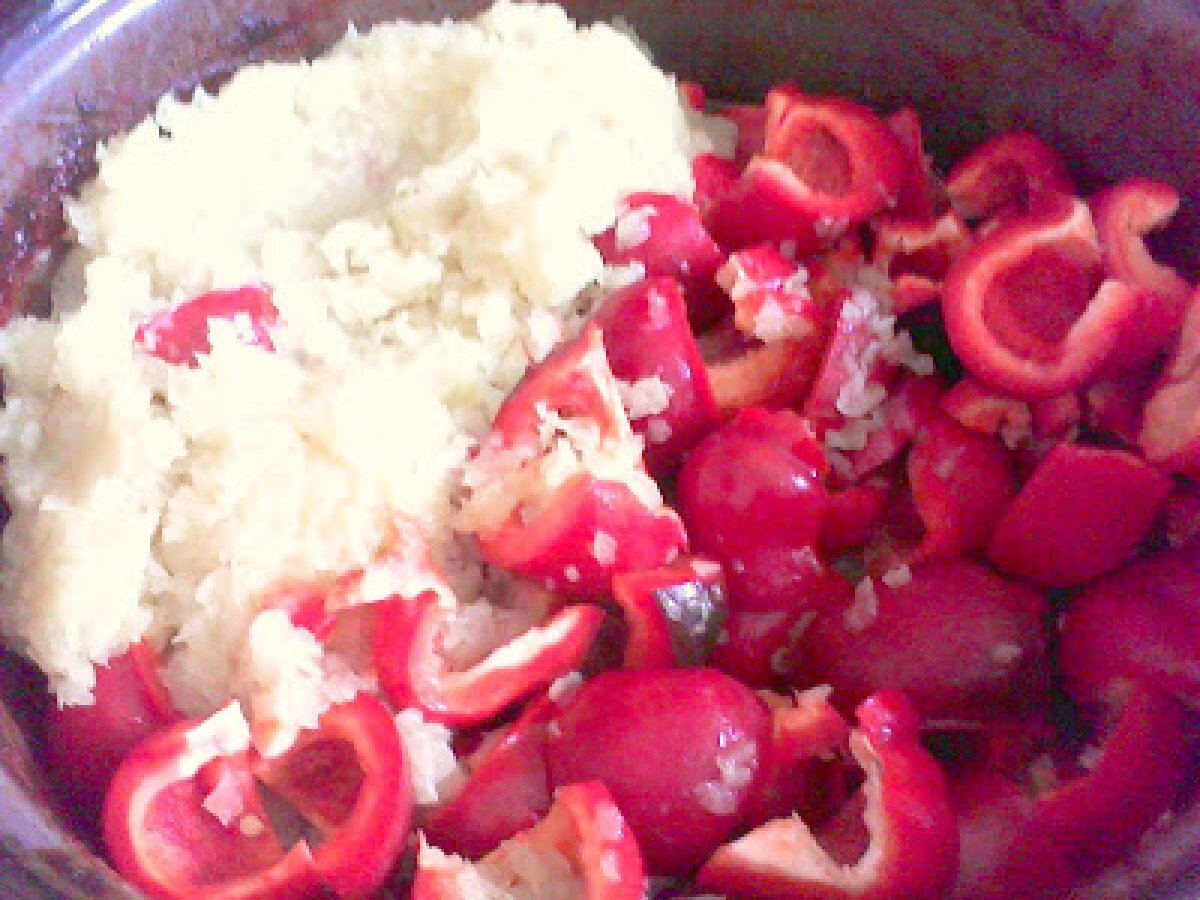 Zacusca de peste pentru iarna / lutenitsa with fish AperitivFoarte ușor1 h 5 m Trimite unui prieten Printează pagina Adresează o întrebare autorului Postează o poză cu rețeta gătită de tine Ingrediente 15 3 kg de peste 3 kg de ceapa 3 kg de gogosari 0,7 l ulei circa 1 l de suc de rosii o cana cu otet usturoi, piper, sare, coriandru