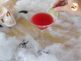 Pentru a face cocktailul mai tematic, poți decora marginea paharului cu o felie de lamaie sau cu un jeleu tematic de Halloween.
