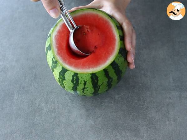Ai nevoie de o lingură de înghețată sau o lingură obișnuită pentru a scoate miezul pepenelui verde.