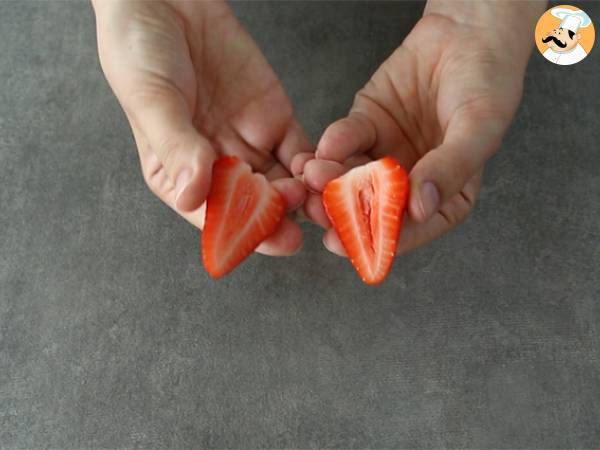 Spalati si taiati capsunele in jumatate.