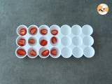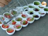 Intr-o forma de cuburi de gheata, puneti capsunele mici taiate in jumatate si frunzele mici de menta. Acoperiti cu apa si puneti iîn congelator pentru cel puțin 2 ore, pentru a se forma cuburi de gheata.