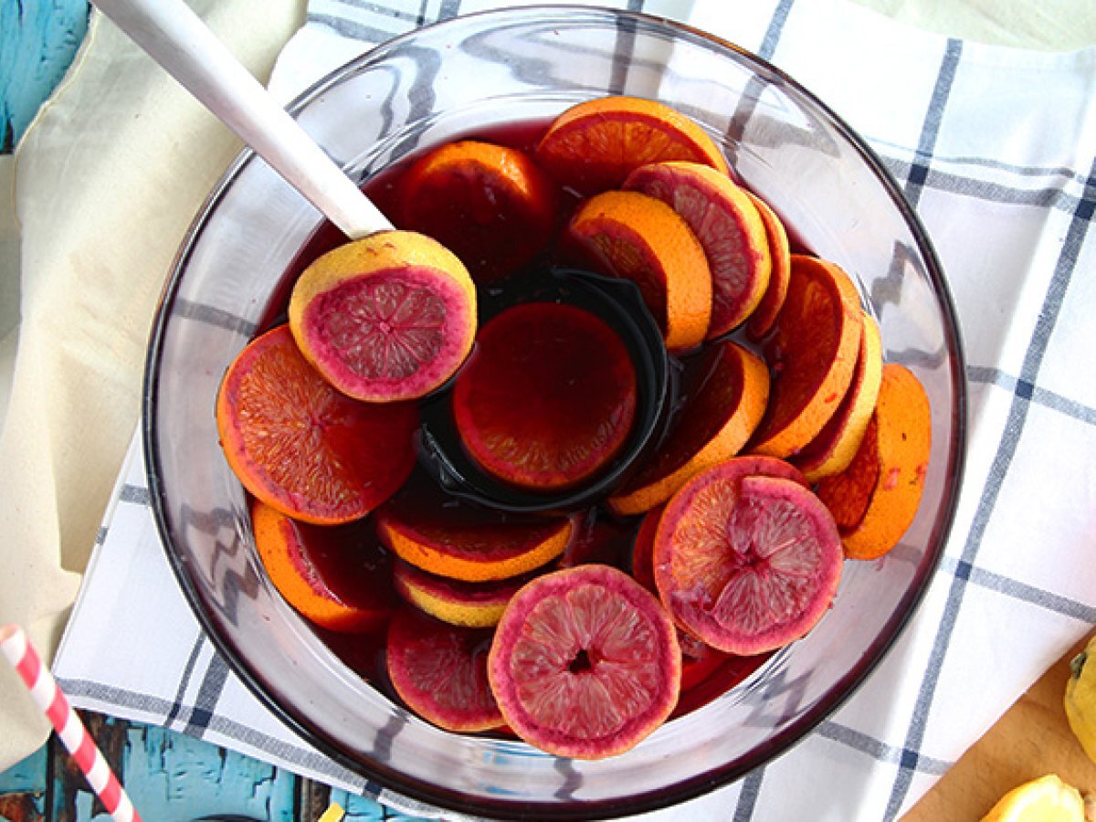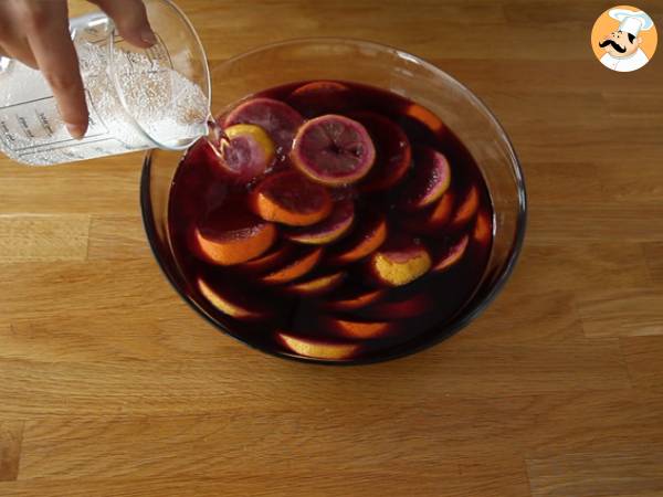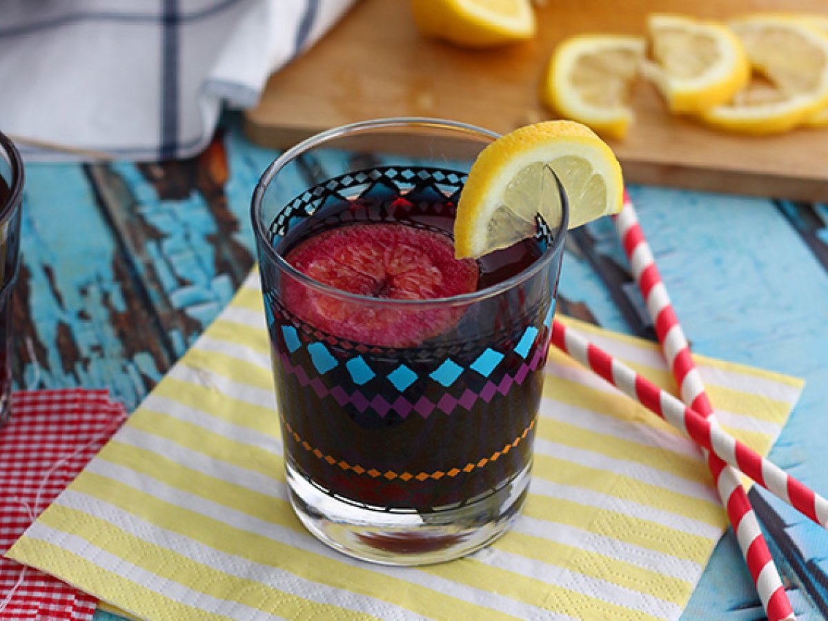 Avem toate ingredientele necesare pentru un aperitiv: sangria ca in Spania! Proaspata si gustoasa, o reteta deosebit de usor de facut. Este necesar sa se faca cu o zi inainte, astfel incat sa aiba destul timp sa se macereze si sa dezvaluie toate aromele sale :-) Urmati indicatiile noastre explicate mai jos. Noroc ;-)