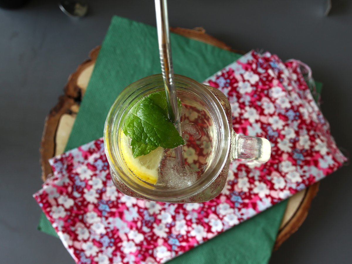 La final, adaugați o felie de lămâie sau lime și câteva frunze de mentă proaspătă.