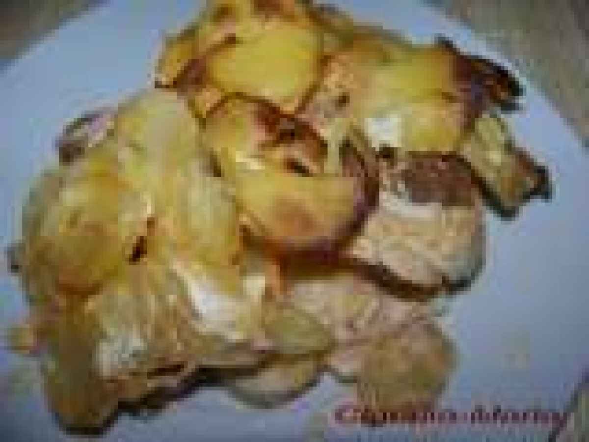 o mancare care o gatesc cam odata pe luna deoarece ne place tare mult, ptr asta insa ne trebuie carnat de casa ce mai greu gasim aici, insa la 60 de km de noi (Heilbron) se afla o macelarie romaneasca de unde luam mezeluri, carnatul il luam proaspat afumat si il lasam noi la uscat in beci ;))), avem nevoie de : cartofi fierti in coaja,oua fierte, smanta si lapte,putina sare si carnat, se taie cartofii rondele,se aseara un strat apoi se taie ouale fierte,carnatul si se mai pune un strat de cartofi taiati, se sareaza si se desface smantana in lapte cat sa acopere toata compozitia din yena,se da la cuptor pana devin cartofii aurii : Banatule Colt de Rai