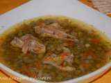 Ingrediente: 2 cepe 2 morcovi 11 bor? 1 lingur? bulion 50 ml ulei 300 g jum?ri de porc sare piper 10 g o?et verdea?? 300 g cartofi Mod de preparare: Punem la fiert ceapa ?i morcovul ras. Când sunt aproape fierte, ad?ug?m cartofii cur??a?i ?