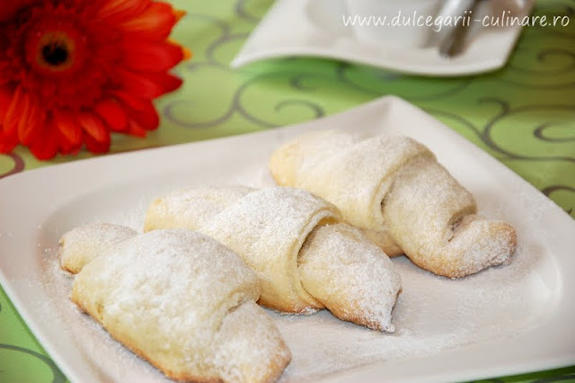 Cand cineva isi doreste croissante ... zic repede: "fac niste cornulete mai ceva ca frantuzii". Asta pana cand m-oi intarata singura si o sa pun mana pe facalet sa dau in aluatul ala frantuzesc din 10 in 10 minute pana o ceda unul din noi. Pana atunci simplitatea e la mine acasa, o gazduiesc cu mare drag.. si se pare ca sunt gazda ideala de vreme ce inca nu vrea sa treaca pragul dincolo... In fine, e o adoratie mai mult decat reciporca...:) mai ales ca pana acum nu ne-am dezamagit una pe cealalta si impreuna pe ceilalti :))