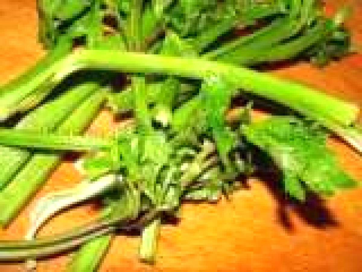 Pentru ca in curand vine iarna si din piata incep sa dispara verziturile (care-mi plac atat de mult) m-am gandit sa fac cateva provizii pentru ciorbite. Frunzele si tulpinitele de telina sunt foarte aromate si dau o aroma aparte mancarurilor. Am cumparat o telina potrivita cu tot cu frunze, din telina propriu-zisa am facut o salata de cruditati cu morcov si mar, iar frunzulitete tinere si tulpinitele le-am tocat marunt si le-am pus in suportul pentru cuburi de gheata, peste care am pus apa. Am introdus la congelator, iar cuburile de verdeata le voi folosi la ciorbite peste iarna.