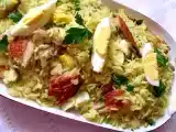 Ingrediente: 2 oua fierte tari,curatate de coaja si taiate in 6, 150 grame orez basmati,fiert conform instructiunilor de pe ambalaj, 1 ceapa medie,taiata...