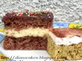 Ingrediente: Pentru blat: 3 oua 100 g zahar 3 linguri cacao 65 ml apa calda 75 g.faina o lingurita praf copt un varf cutit-sare Pentru crema 1: 200 g ciocolata...