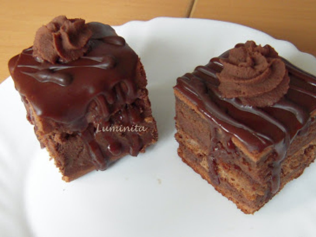 Amandine, adevarate... PrecedentulUrmătorul DesertFoarte ușor55 min Trimite unui prieten Printează pagina Adresează o întrebare autorului Postează o poză cu rețeta gătită de tine Ingrediente 7 6 oua; 200 g zahar; 30 ml apa; 30 ml ulei; 20 g cacao; 6 linguri de faina. Crema, ganache de ciocolata cu lapte: 300 g ciocolata cu lapte; 300 ml frisca lichida; o fiola esenta de rom Blatul se taie in trei felii egale, care se insiropeaza din belsug cu urmatorul sirop: 300-400 ml apa; 150 g zahar; o fiola esenta de rom. 300 g zahar; apa, cat sa umezeasca usor zaharul; o lingura de miere de albine; o lingura de suc de lamaie; 4 linguri de cacao.