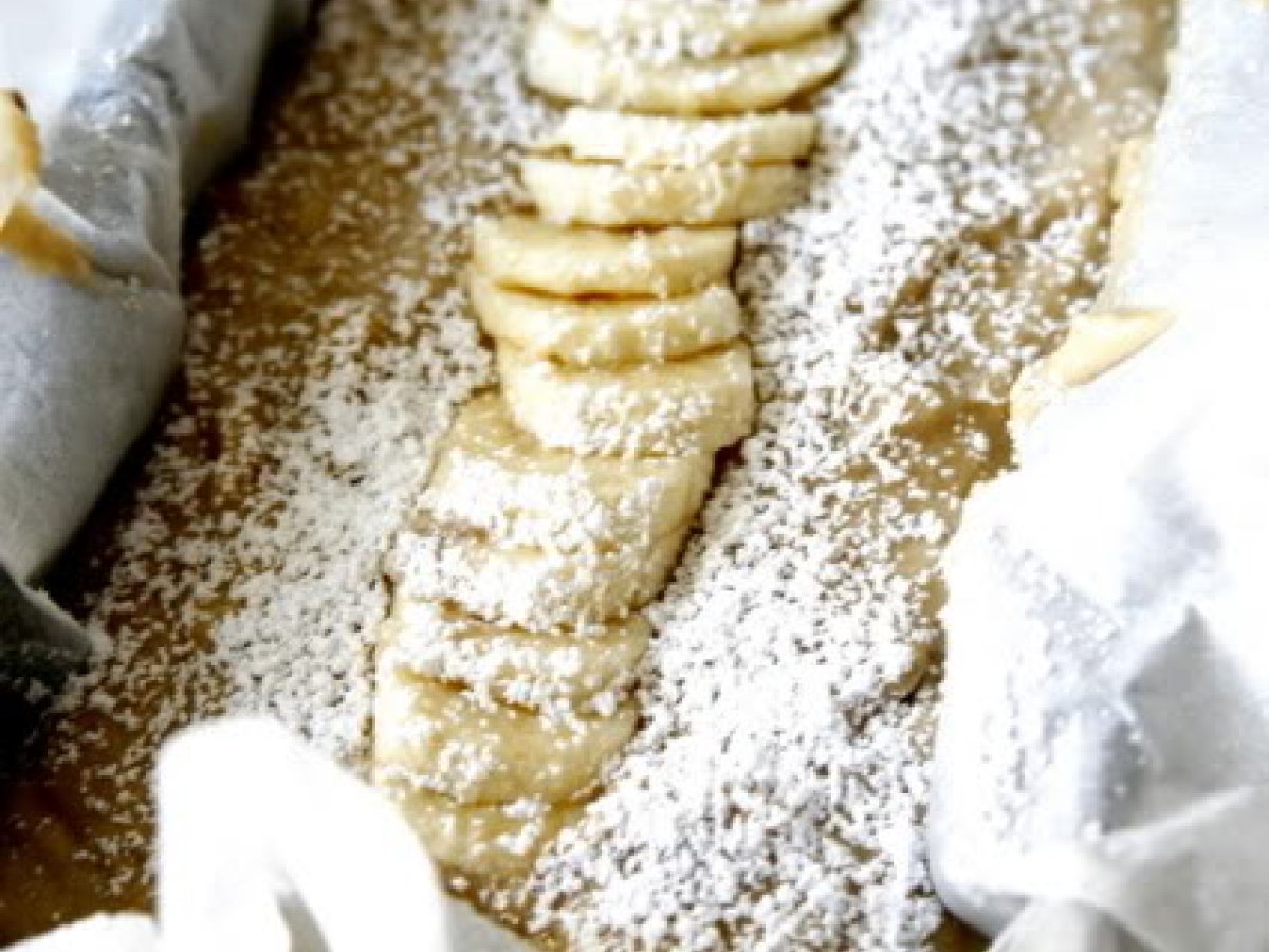 Banana bread PrecedentulUrmătorul DesertFoarte ușor2 ore Trimite unui prieten Printează pagina Adresează o întrebare autorului Postează o poză cu rețeta gătită de tine Ingrediente 6 120 grame unt 1 cup/200 grame zahar brun sau alb (eu prefer brun, mi se pare ca da un gust mai caramelos si nici nu e asa de dulce) 2 oua 2 cups/ 250 g faina 1 lingurita bicarbonat de sodiu jumatate lingurita sare 3 banane pasate 70-100 g nuci (optional) 1 jumatate de banana pentru ornat (optional) 1 lingurita de zahar pudra (optional)