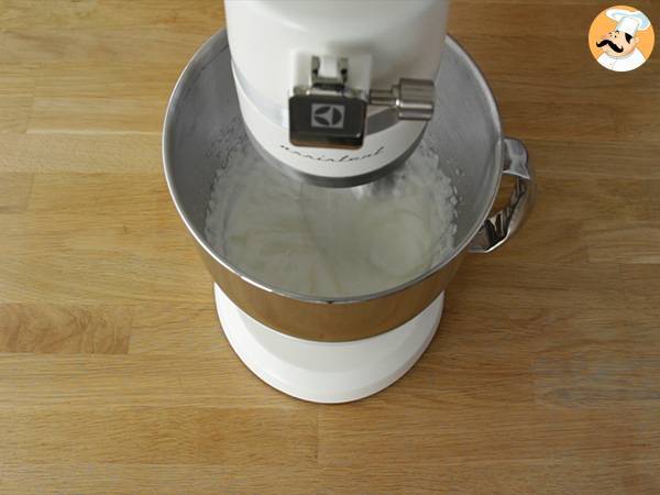 Bateti frisca (trebuie sa fie foarte rece) pana se face spuma. Puneti pe tarta.