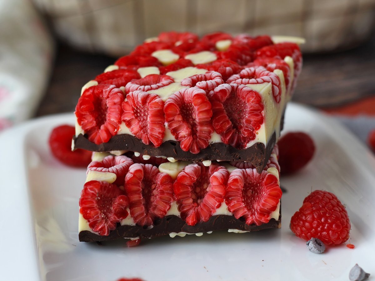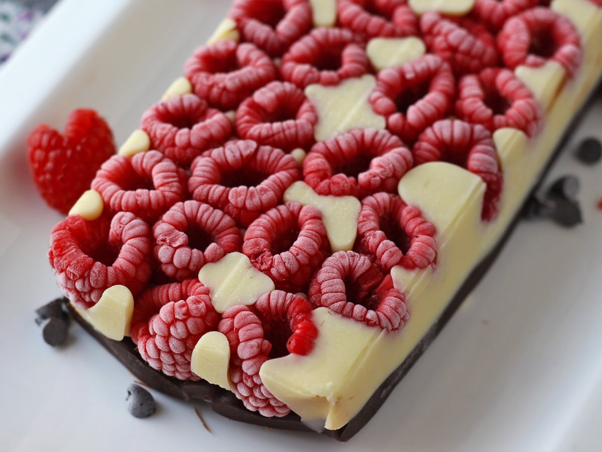 Acest deliciu dulce este inspirat de Franui! Plongez dans un tourbillon de saveurs cu zmeura proaspătă acoperită cu un strat catifelat de ciocolată albă, apoi cu o coajă crocantă de ciocolată neagră. Cu aciditatea fructelor, dulceața ciocolatei albe și intensitatea ciocolatei negre, fiecare mușcătură din acest baton este o încântare pură. O rețetă simplă, rafinată, perfectă pentru iubitorii de contraste gourmet!