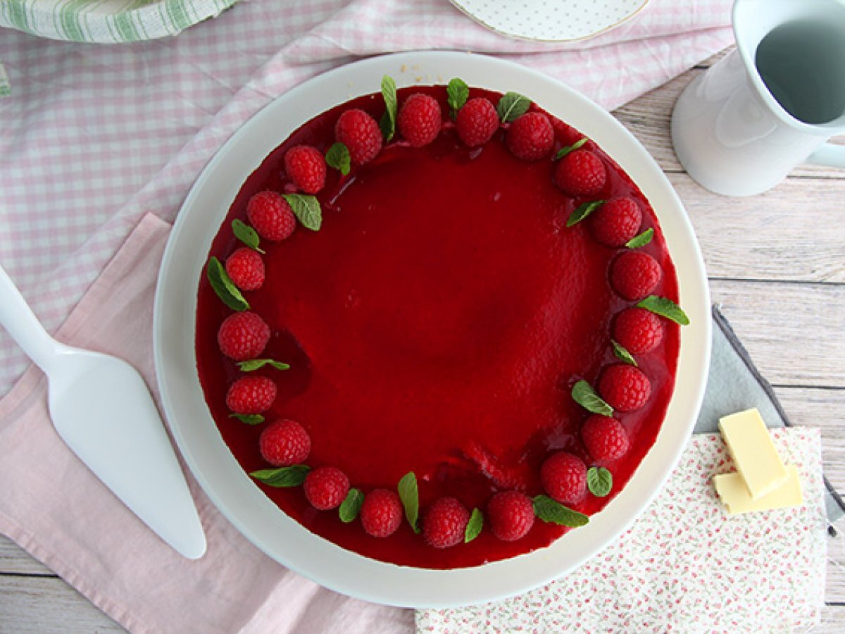 Aranjati zmeura proaspata pe marginea tortului.