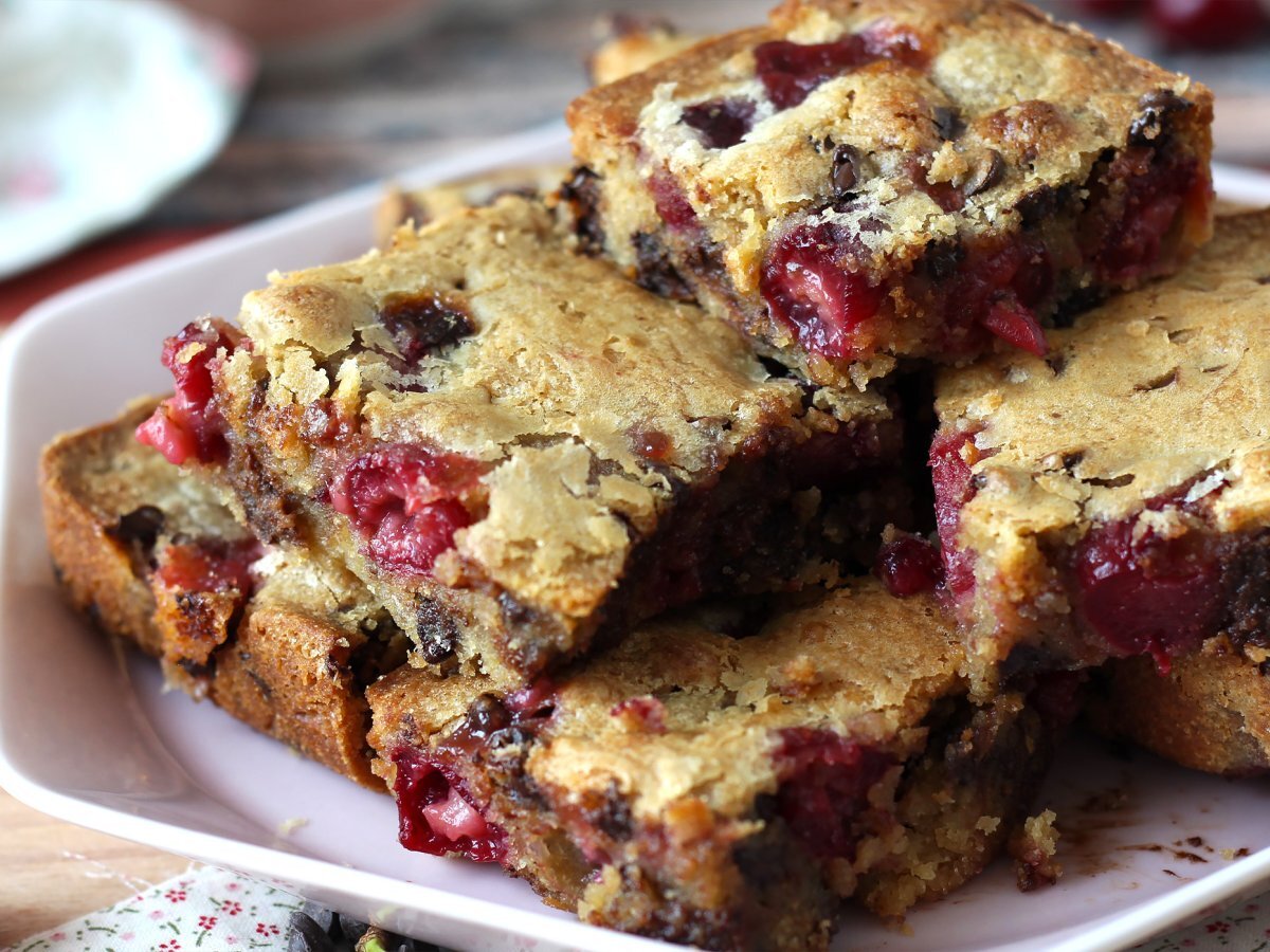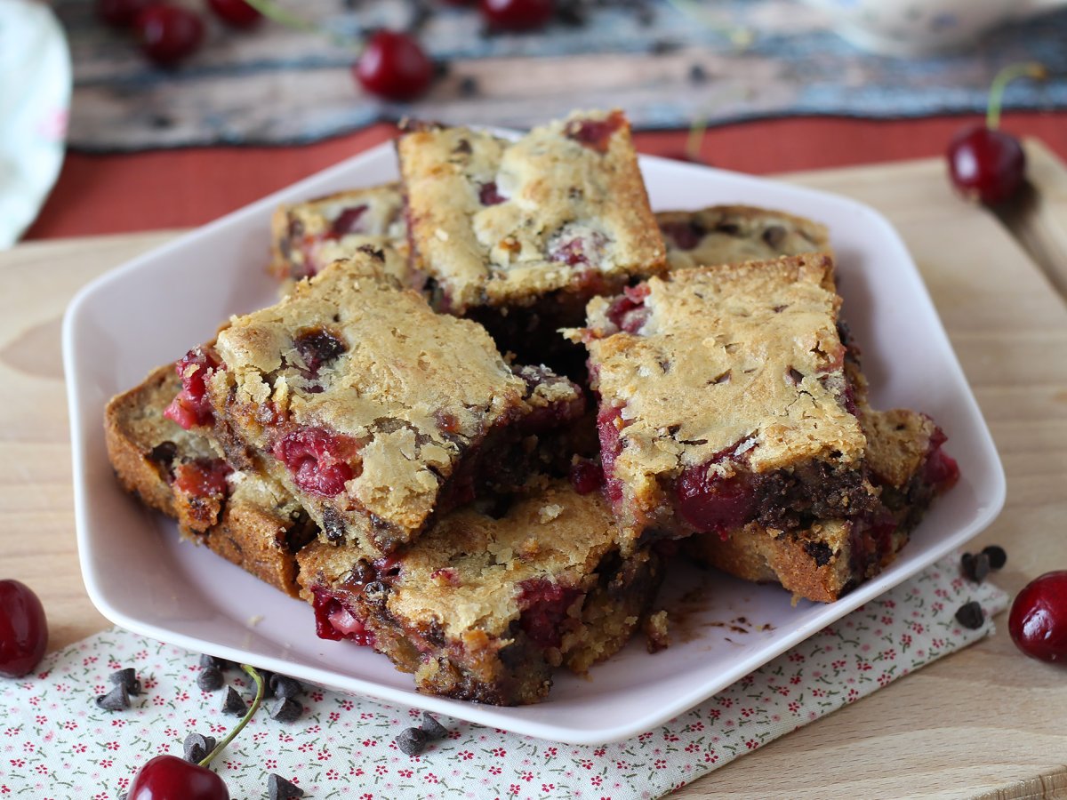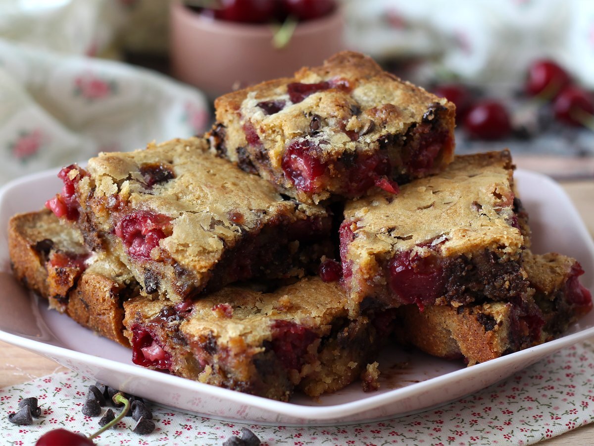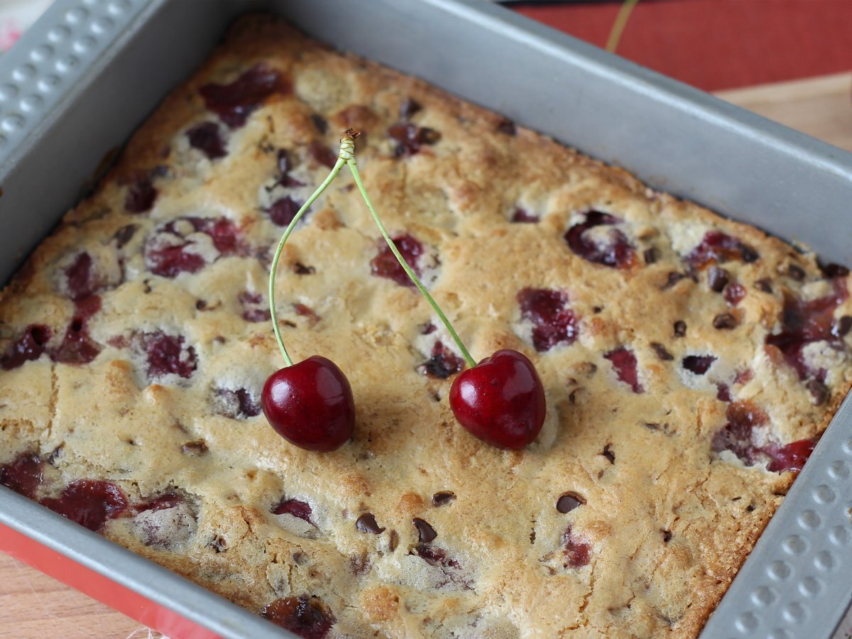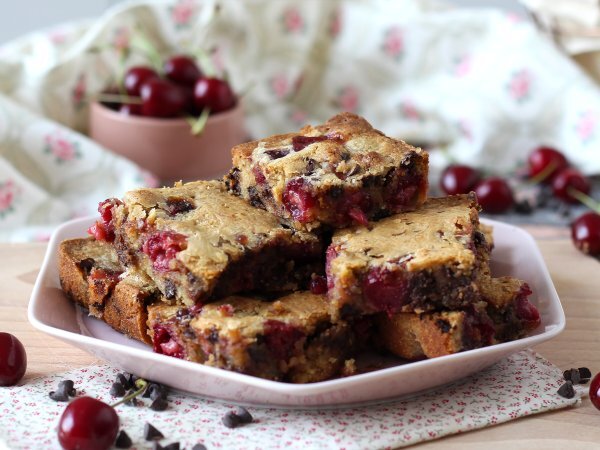 Blondie cu cireșe și ciocolată