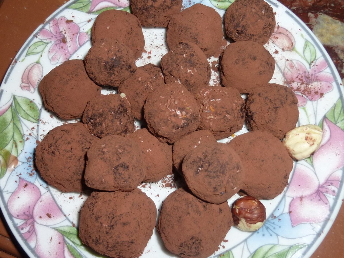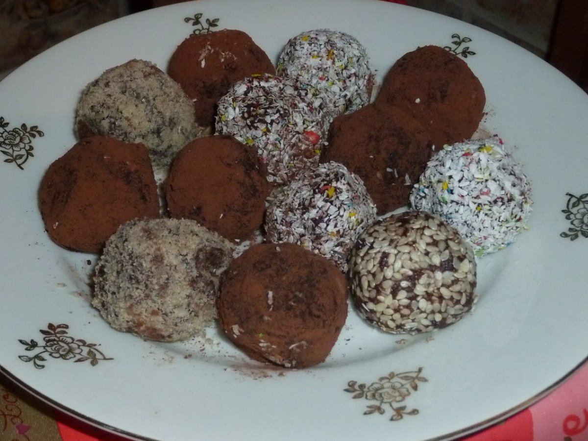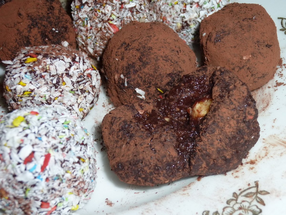 Bomboane crude de ciocolata PrecedentulUrmătorul DesertUșor30 min Trimite unui prieten Printează pagina Adresează o întrebare autorului Postează o poză cu rețeta gătită de tine Ingrediente 4 2 Lg ulei de palmier sau avocado 4-5 Lg miere 3-4 Lg cacao sau carob 1 cană caju sau migdale (inmuiate inainte pentru 1 h) ¼ cană apă (sau mai putina) 2 cani 'faina' de seminte de floare soarelui (crude) fulgi de cocos pentru ornat alune de padure pentru "surpriza"