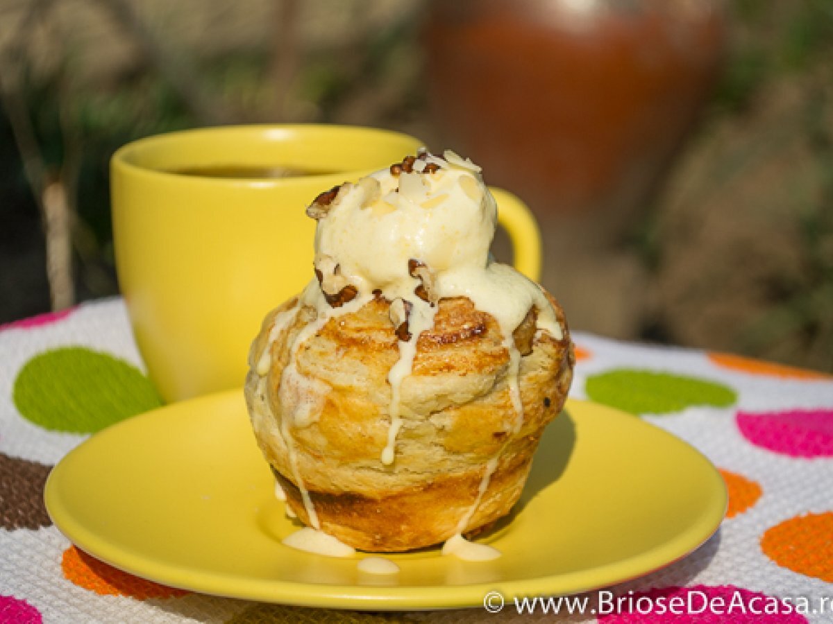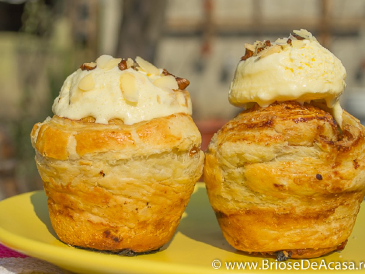 Briose din foietaj, cu mere si inghetata PrecedentulUrmătorul DesertUșor1 oră Trimite unui prieten Printează pagina Adresează o întrebare autorului Postează o poză cu rețeta gătită de tine Mini-desert: briose din foietaj, cu mere, inghetata, nuci si migdale. Ingrediente 12 1 pachet aluat foietaj 800 g 500 g mere rase 1 lingurita scortisoara 50 g zahar brun 900 g inghetata de vanilie (cantitatea este orientativa si poate fi ajustata dupa preferintele proprii) 50 g miez de nuca 50 g fulgi de migdale