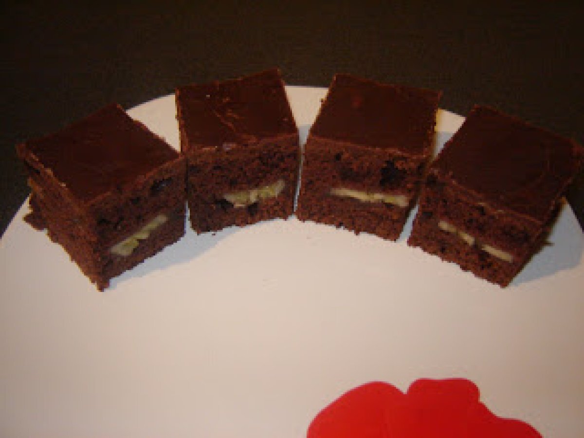 Brownie cu banane PrecedentulUrmătorul DesertFoarte ușor1 h 30 m Trimite unui prieten Printează pagina Adresează o întrebare autorului Postează o poză cu rețeta gătită de tine Ingrediente 4 200 g unt 400 g faina 200 g ciocolata 2 lingurite ness 2 linguri de cacao 2 linguri lichior 1/2 lingurita de sare 200 g zahar 3 oua esenta de vanilie 1 lingurita bicarbonat 4 banane
