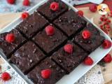 După versiunea cu cireșe, pe care toată lumea a îndrăgit-o, am încercat varianta de brownie cu ciocolată și zmeură pentru un răsfăț pur. Imaginați-vă, bucăți de zmeură acidulată care se amestecă cu dulceața ciocolatei, într-o brownie atât de moale... Și dacă doriți, puteți să adaugați fructe uscate (nuci, alune, nuci pecan) pentru a da o notă crocantă :-)