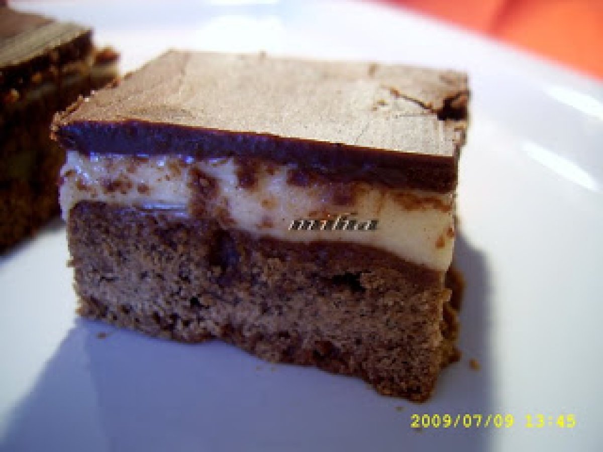 Brownies cappucino PrecedentulUrmătorul DesertFoarte ușor1 h 50 m Trimite unui prieten Printează pagina Adresează o întrebare autorului Postează o poză cu rețeta gătită de tine Ingrediente 6 120 g ciocolata amaruie 85 g unt 1 lingurita ness, dizolvat in 1/2 lingura apa fierbinte 100 g zahar 1 fiola de esenta de vanilie 2 oua 1/2 cana faina un virf de cutit de sare 1/2 cana de miez de nuca 150 g crema de branza Almette cu smantana 40 g unt moale 100 g zahar pudra 1/2 fiola de vanilie 1/2 lingurita scortisoara 80 g ciocolata amaruie 20 g unt 50 ml frisca lichida 2 lingurite ness, dizolvat in 1/2 lingura apa fierbinte