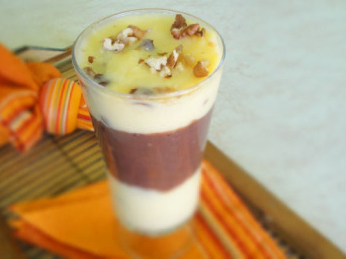 Budinca de ciocolata si vanilie cu stafide si nuci DesertFoarte ușor25 min Trimite unui prieten Printează pagina Adresează o întrebare autorului Postează o poză cu rețeta gătită de tine Ingrediente 3 1 budinca de vanilie 1 budinca de ciocolata 1 l lapte 8 linguri de zahar 1/2 cana stafide innmuiate in apa cu rom pentru a se -hidrata 1/4 cana nuci taiate marunt