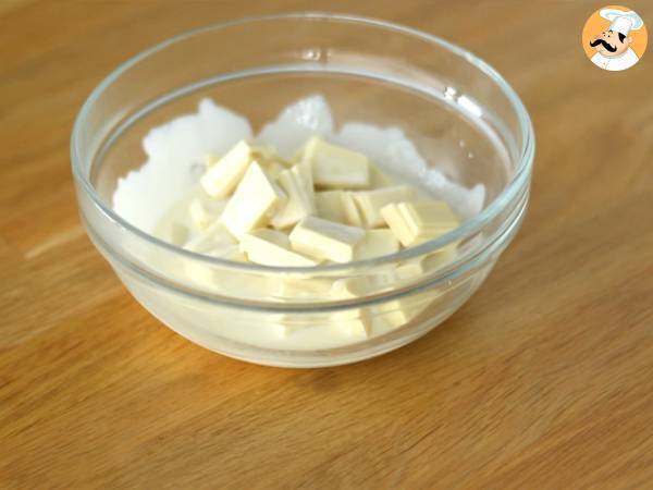 Incalziti smantana lichida, iar cand fierbe, turnati peste ciocolata alba. Se amesteca pana cand se obtine o crema omogena si se lasa la frigider timp de 3 ore.