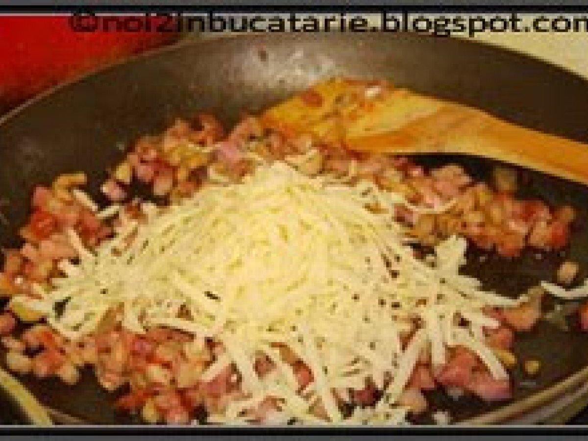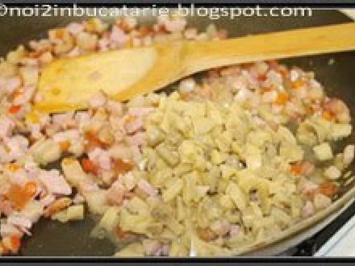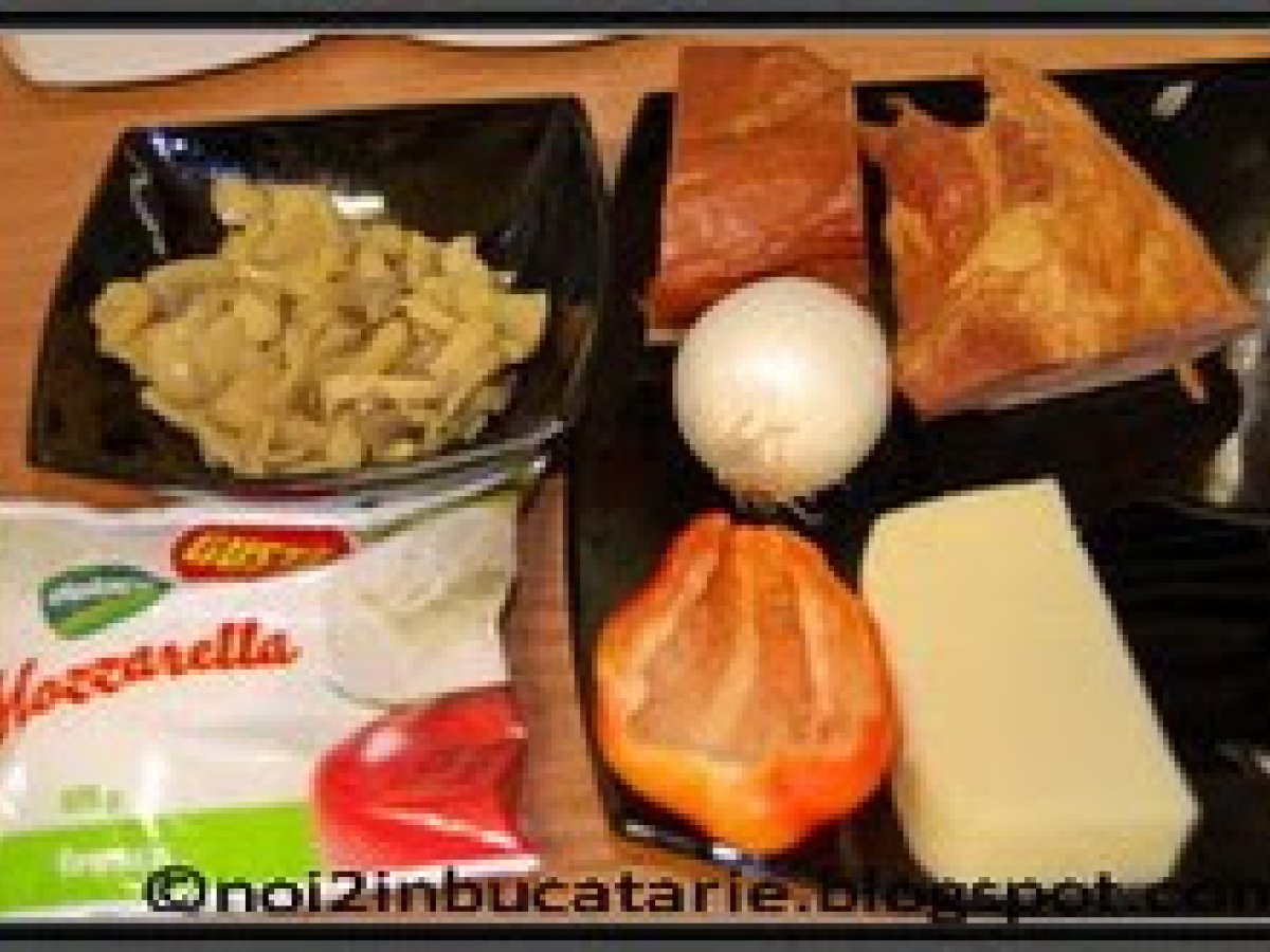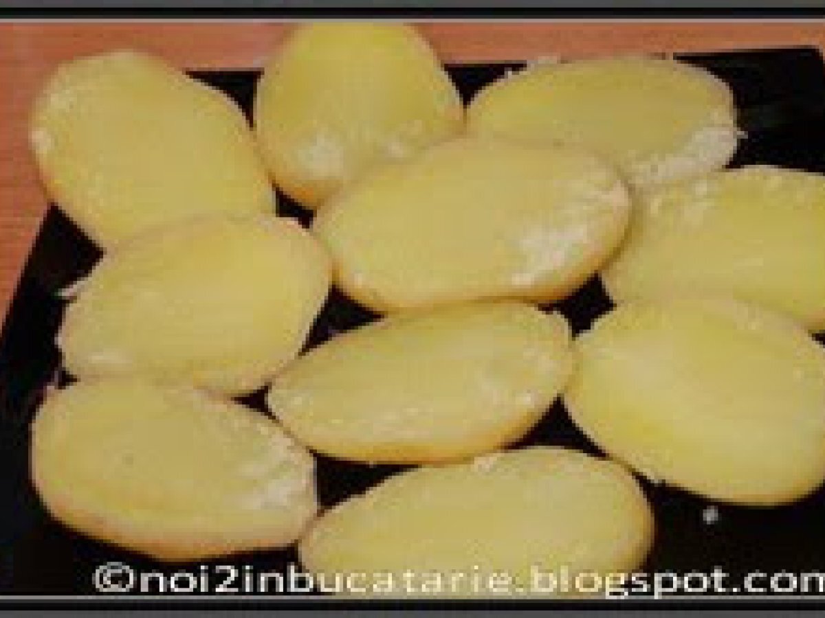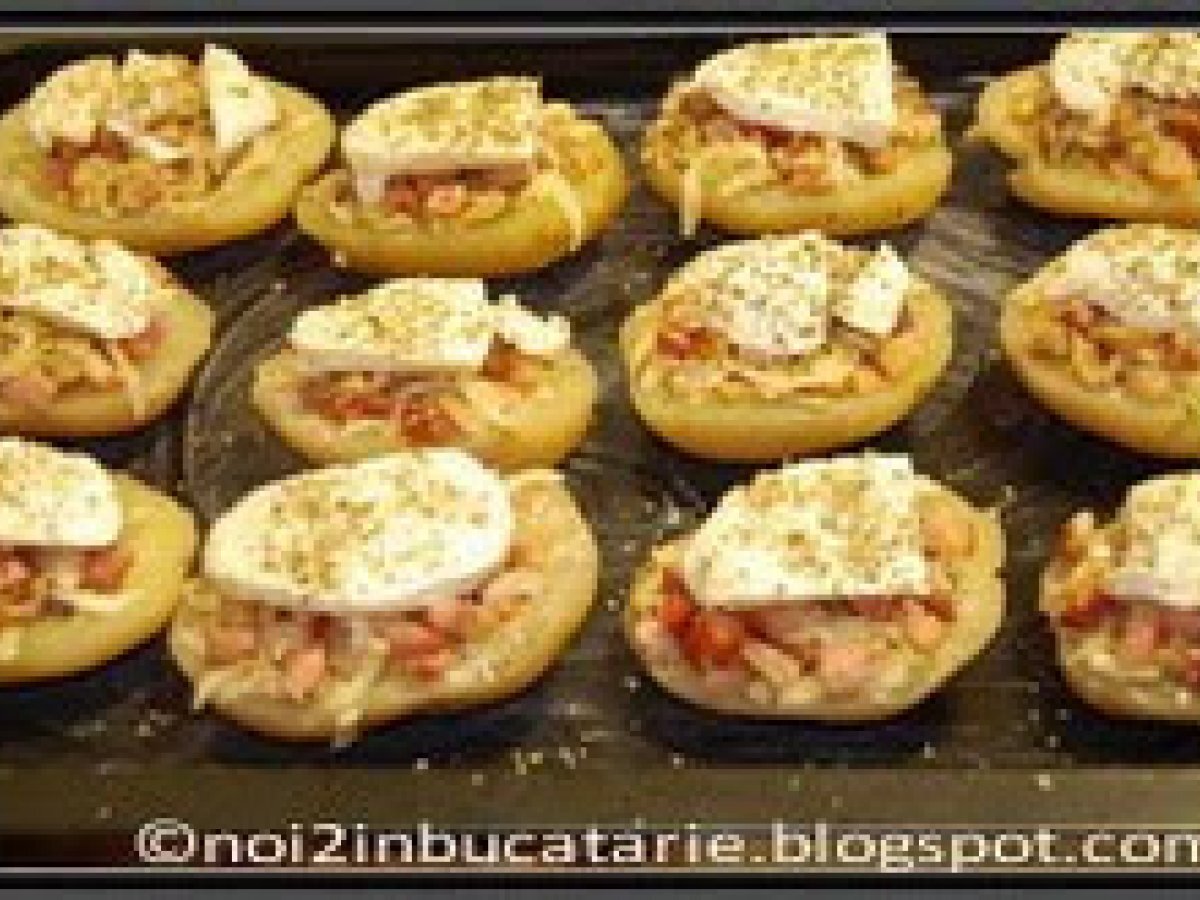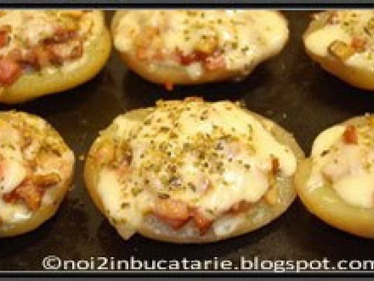 Cartofi umpluti PrecedentulUrmătorul DesertFoarte ușor45 min Trimite unui prieten Printează pagina Adresează o întrebare autorului Postează o poză cu rețeta gătită de tine Ingrediente 4 6 cartofi potrivit de mari si aproximativ de aceeasi marime, fierti in coaja o ceapa jumatate de ardei 200 g kaizer sau bacon (sau ceva sunculita, dar mai grasa) 200 g sunculita taraneasca (fara asa multa grasime) 100 g cascaval o conserva mica de ciuperci 125 g mozzarella