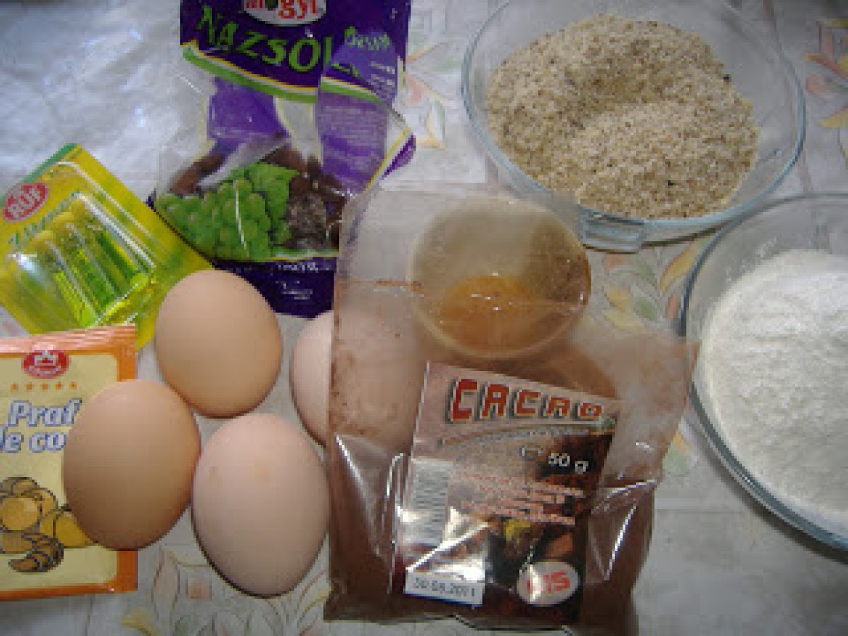 Chec cu nuca si stafide PrecedentulUrmătorul DesertFoarte ușor40 min Trimite unui prieten Printează pagina Adresează o întrebare autorului Postează o poză cu rețeta gătită de tine Ingrediente 2 4 oua 100 ml ulei 200 g zahar 2 esente (vanilie, lamaie etc) 1 praf de copt 150 g faina 1 ling cacao nuca macinata stafide