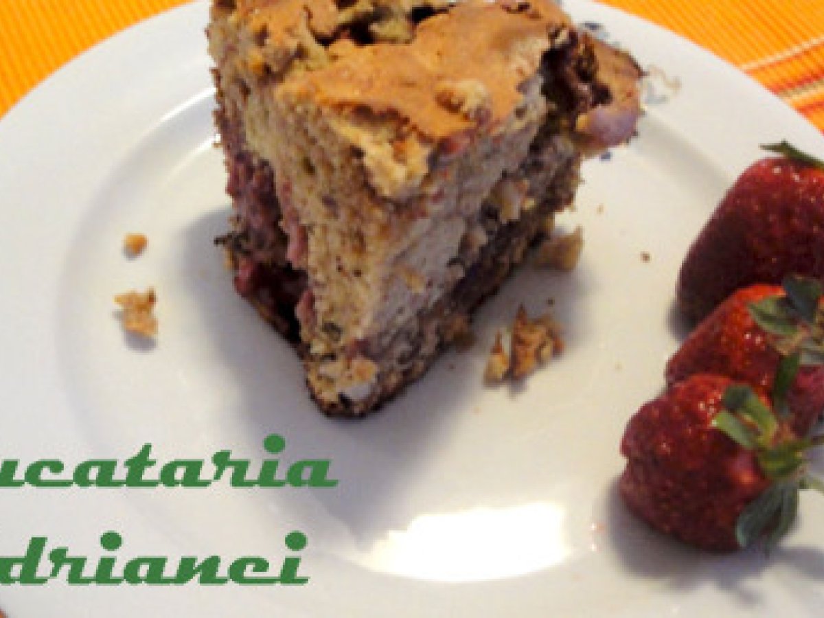 Chec de capsuni cu smantana (strawberry sour cream bread) DesertFoarte ușor1 h 30 m Trimite unui prieten Printează pagina Adresează o întrebare autorului Postează o poză cu rețeta gătită de tine Ingrediente 4 1/2 cana unt 3/4 cana zahar alb (dublati cantitatea daca doriti sa fie ca si o prajitura) 3 oua 2 plicuri zahar vanilat 2 cani faina 1/2 lingurita bicarbonat 1/2 lingurita praf de copt 1/4 lingurita sare 1 lingurita scortisoara 1/2 cana smantana 1/2 cana nuci prajite si taiate marunt 2 cani capsuni taiate marunt 1/2 cana stafide